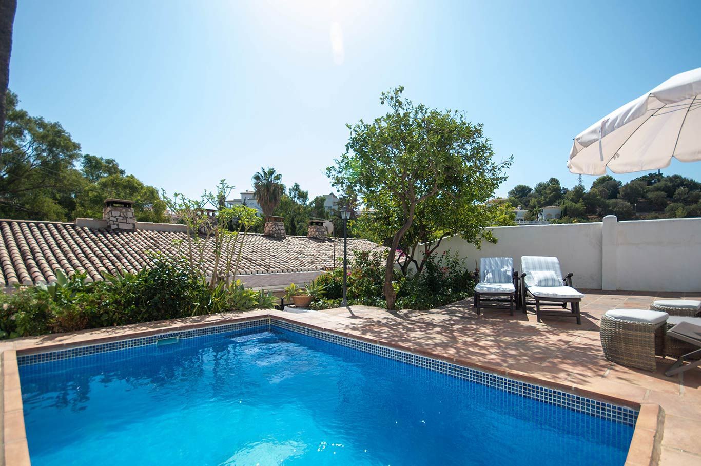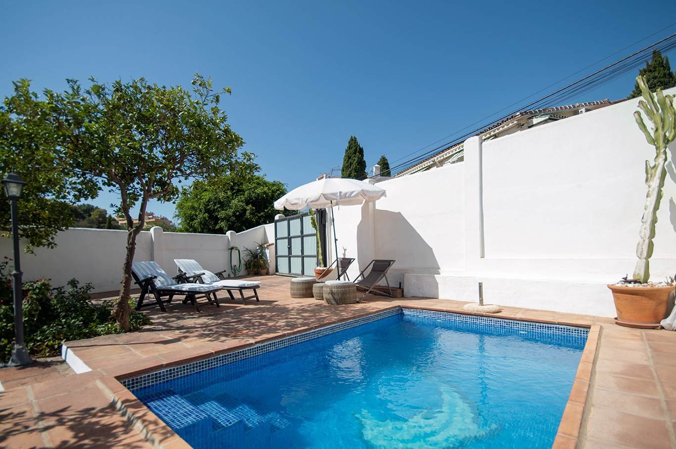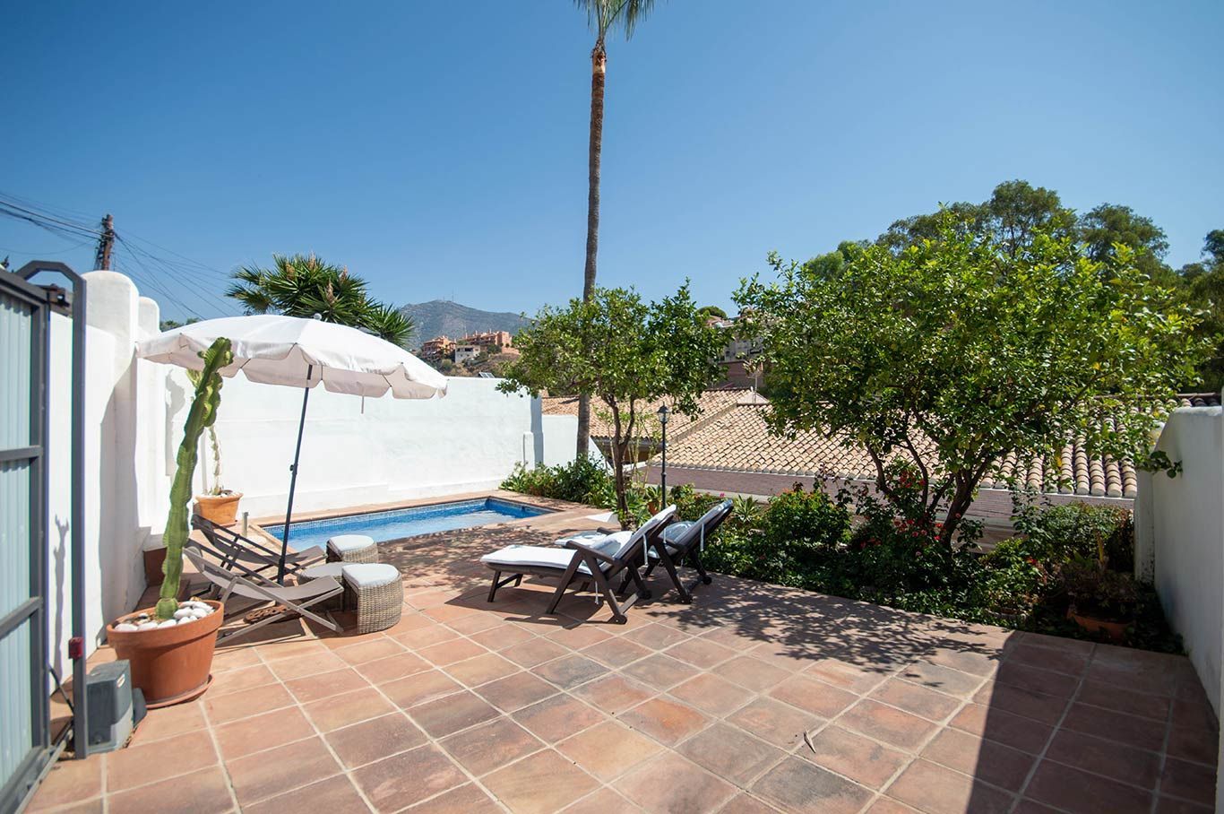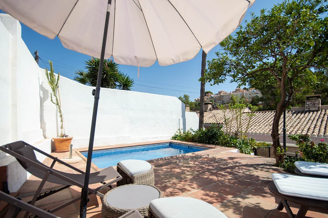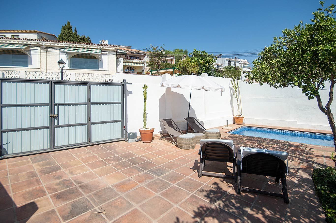 Beautiful 1-bedroom, 1-bathroom chalet with spacious outdoor areas, terraces, and a private pool in the upper area of Los Pacos. The private complex includes a parking space. The pool measures approximately 3 x 2.5 meters, and the terrace is furnished with furniture, tables, sun loungers, and umbrellas.