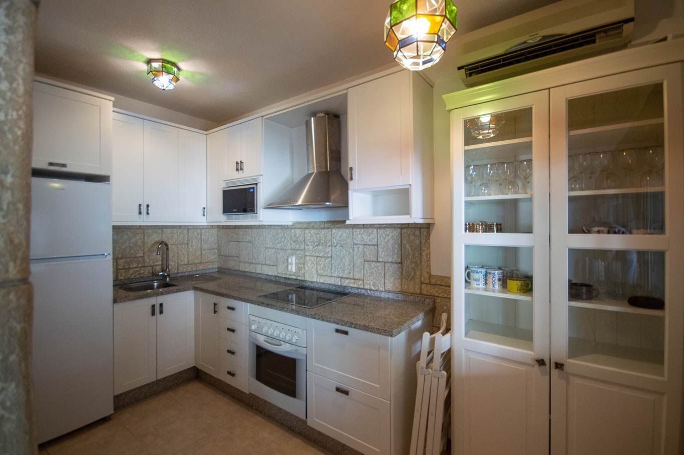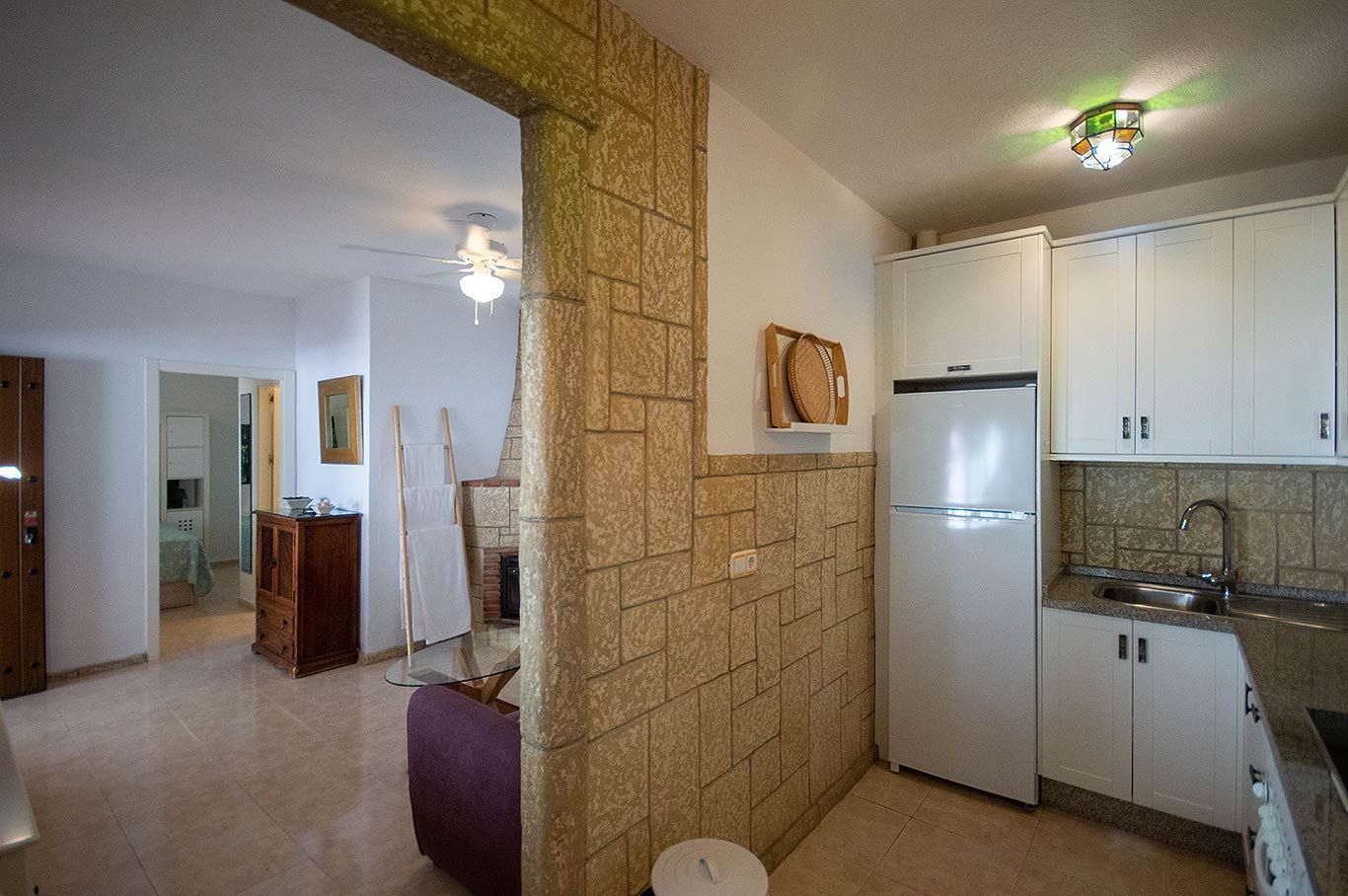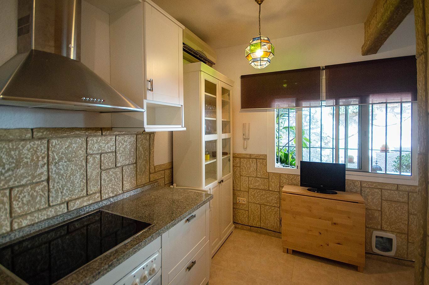 The property is located on the lower floor, accessed by descending some stairs. It also offers a large additional terrace and retractable awnings for protection from the sun and wind. The living room comes with a fireplace and a comfortable chaise longue sofa, as well as air conditioning. The recently renovated kitchen is equipped with modern appliances. The bathroom has a shower tray, and the bedroom features a double bed.