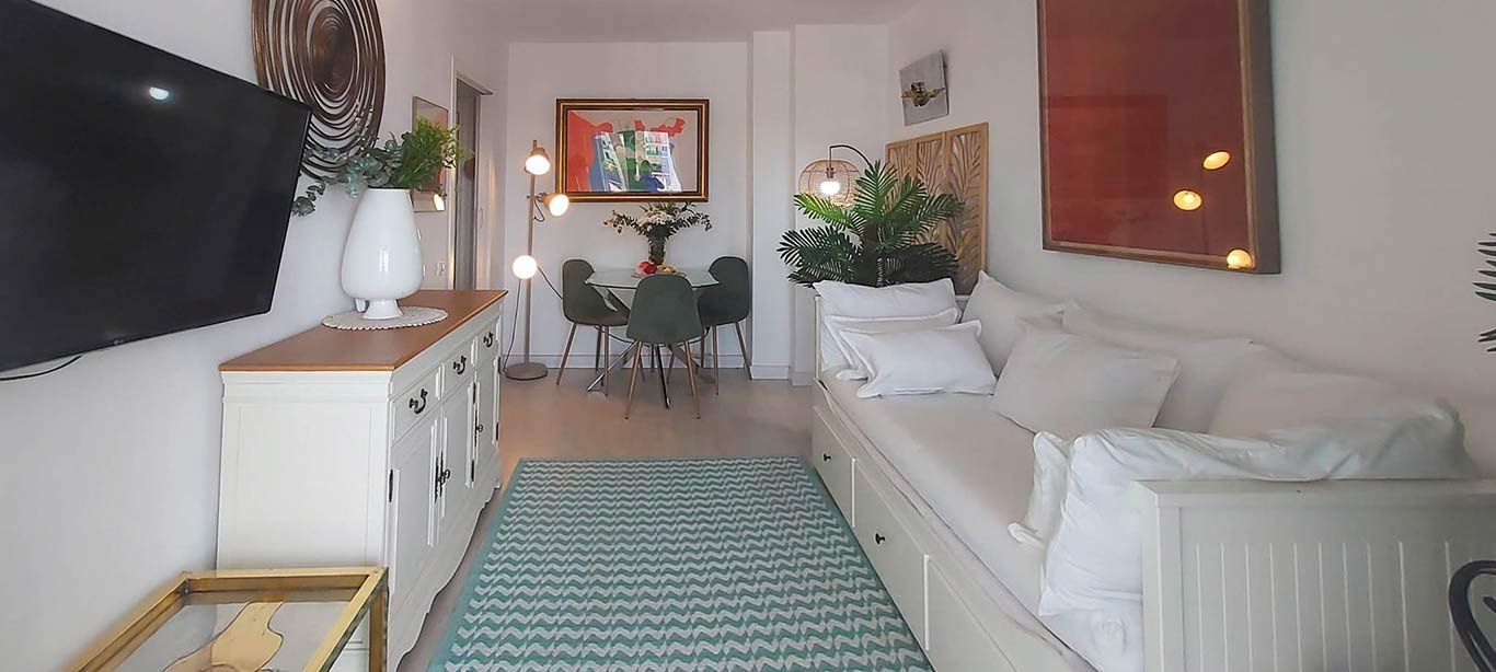 It has 1 bedroom, 1 bathroom with shower, independent kitchen with oven, microwave, etc., sofa bed for 1 person, air conditioning in the living room and bedroom, large terrace with afternoon sun.