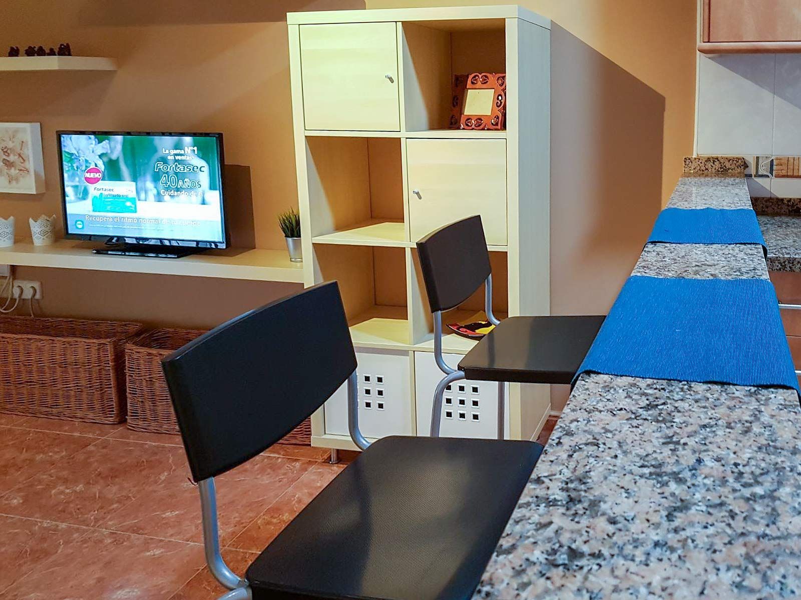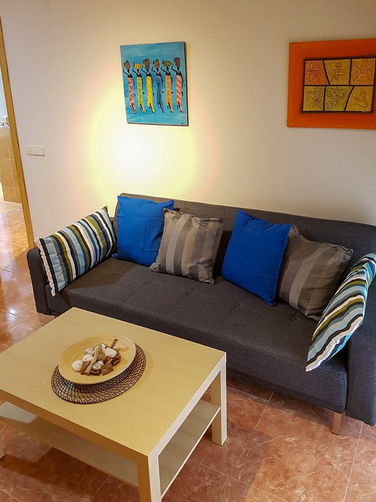 Centro Playa Calle del Castillo. Cozy and bright exterior apartment with a balcony exceptionally located in the second line of the beach and in the heart of Fuengirola. Fully equipped open kitchen with ceramic hob, microwave, coffee maker, toaster. Full bathroom with bathtub and bidet, living-dining room with sofa bed and flat screen TV, large corner built-in wardrobe. Double bed, air conditioning unit for heating and cooling in the living room, ceiling fan in the bedroom and living room. LED lighting throughout the apartment. Small, quiet, and family-friendly building.