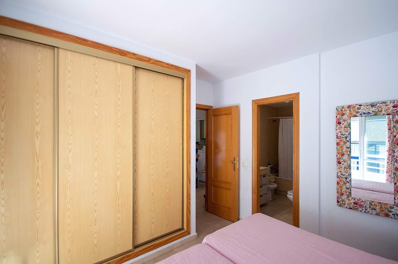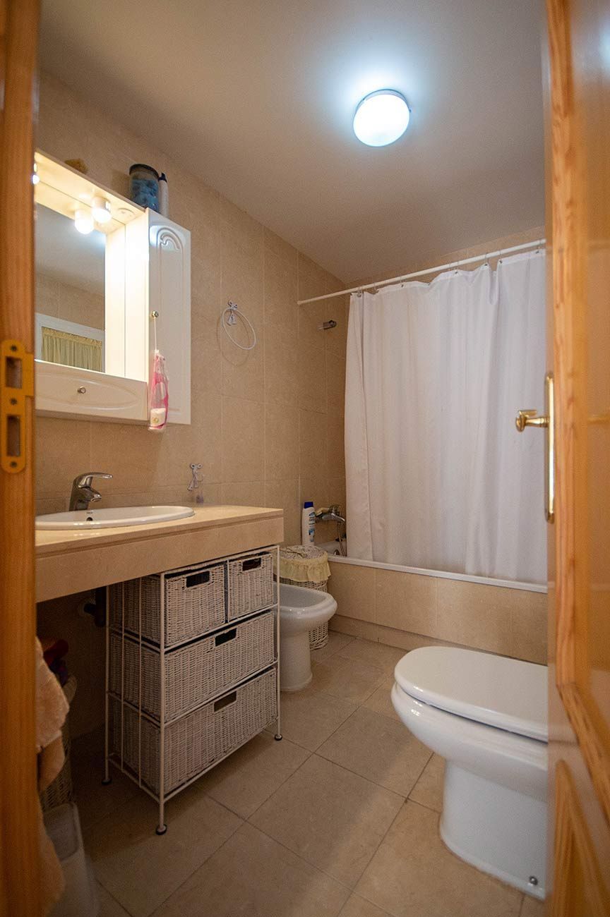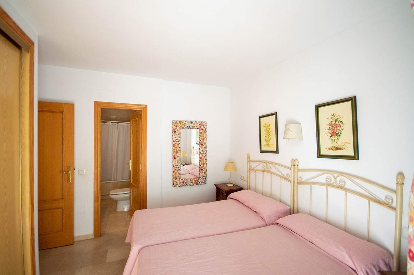 It has one bedroom and 2 bathrooms, one with a shower and another en suite with a bathtub.