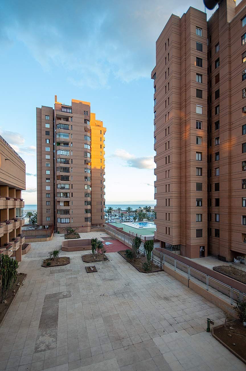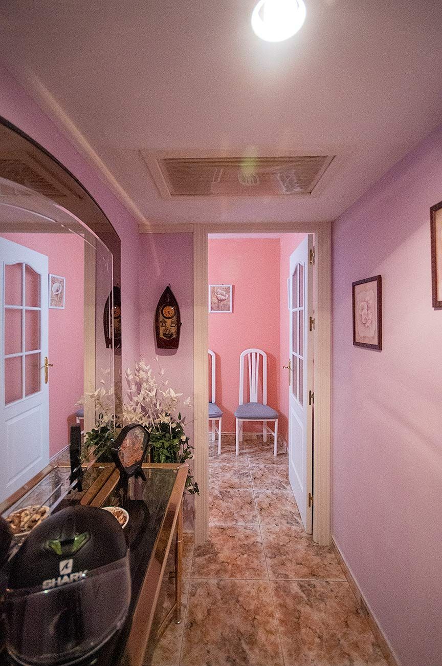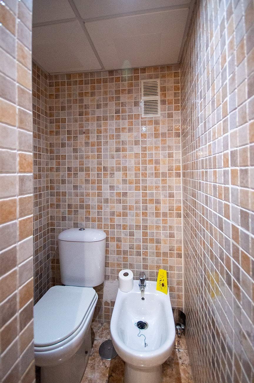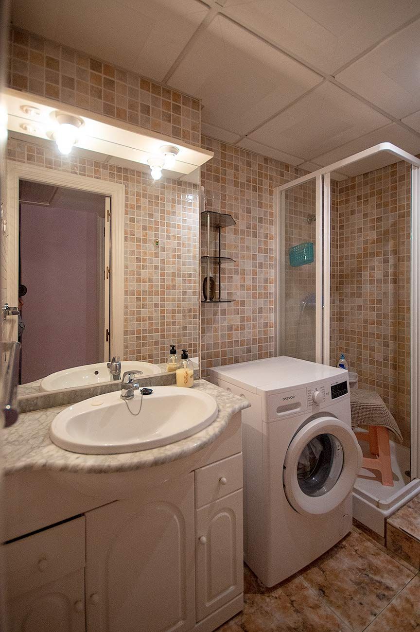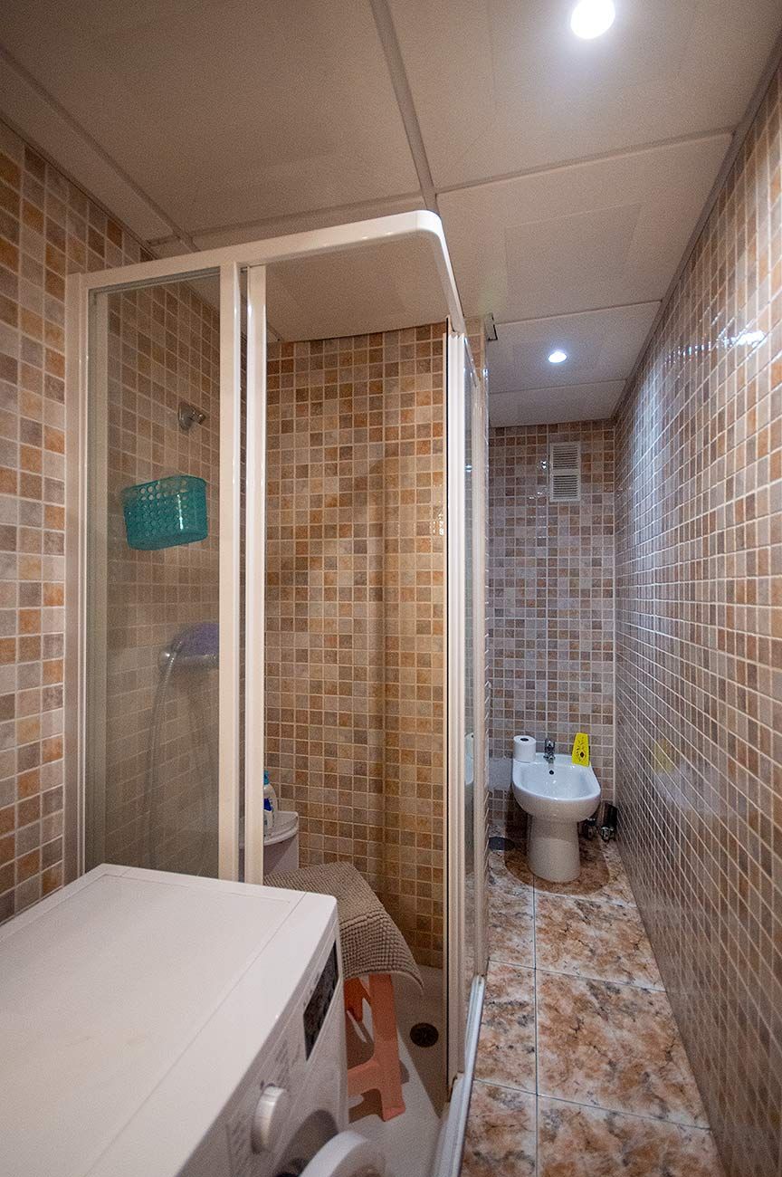 Air conditioning in the living room, flat-screen TV, and an open kitchen