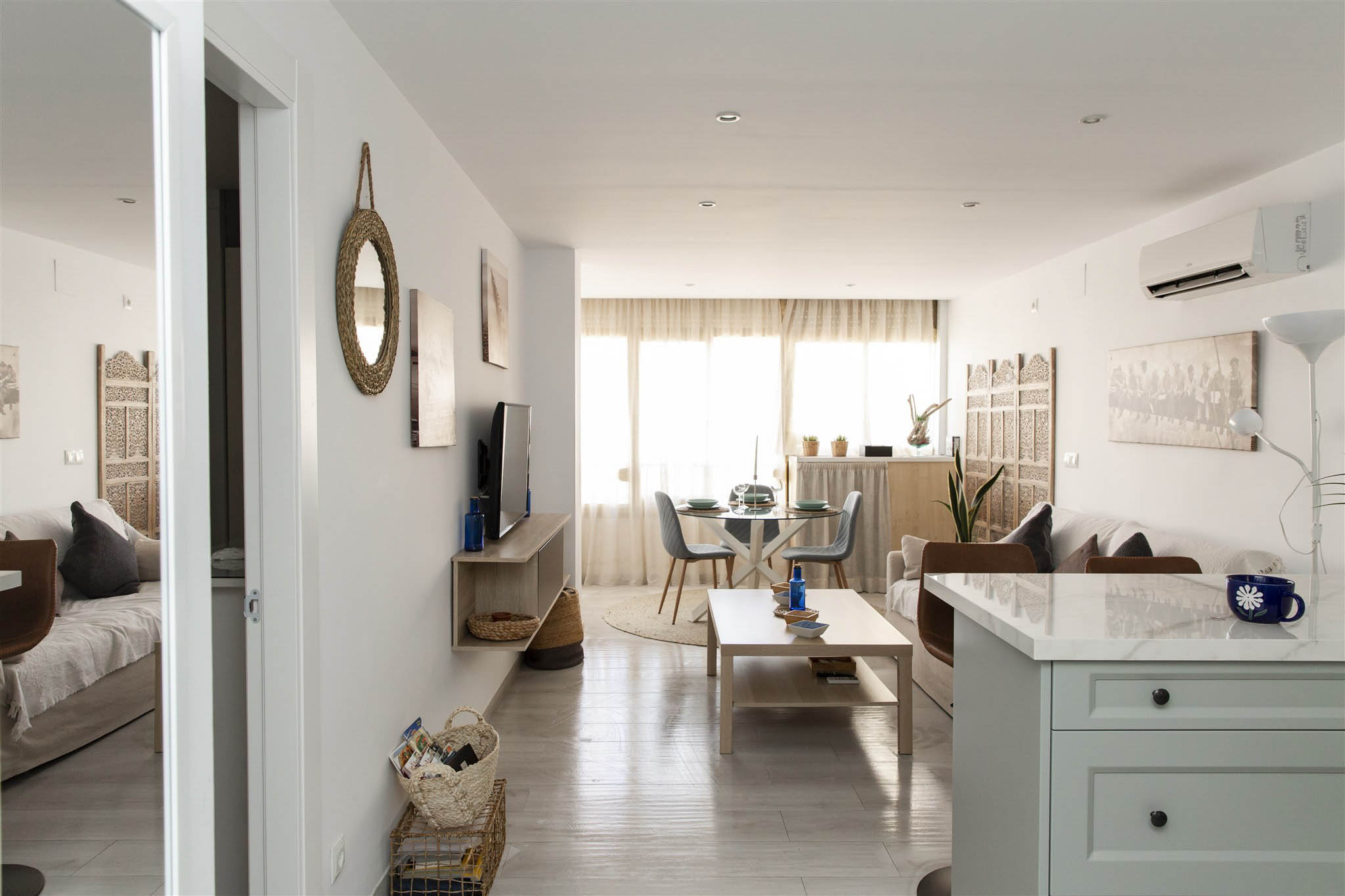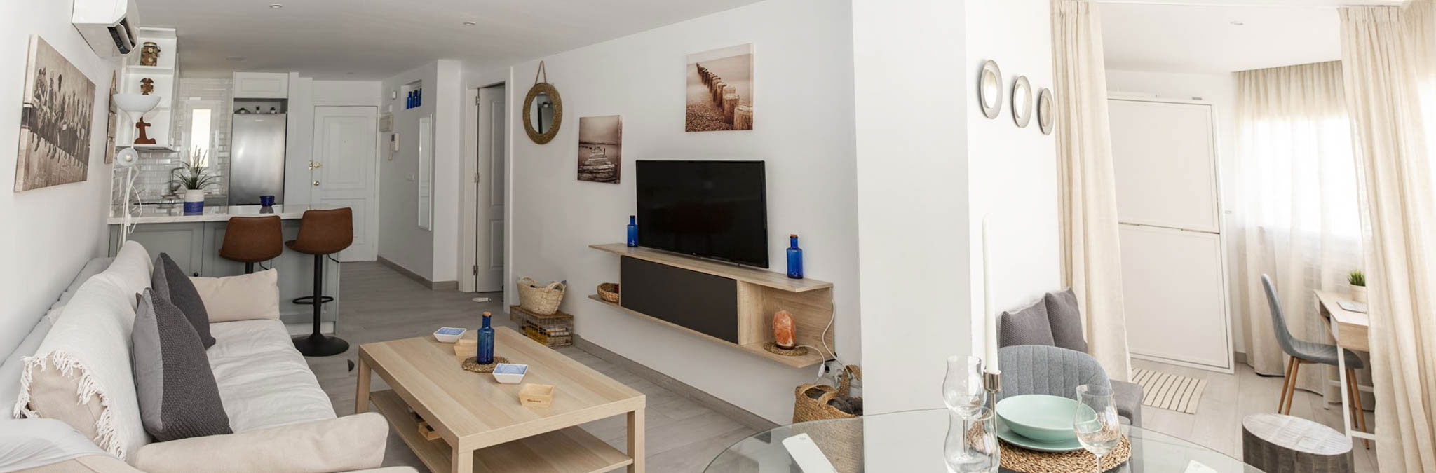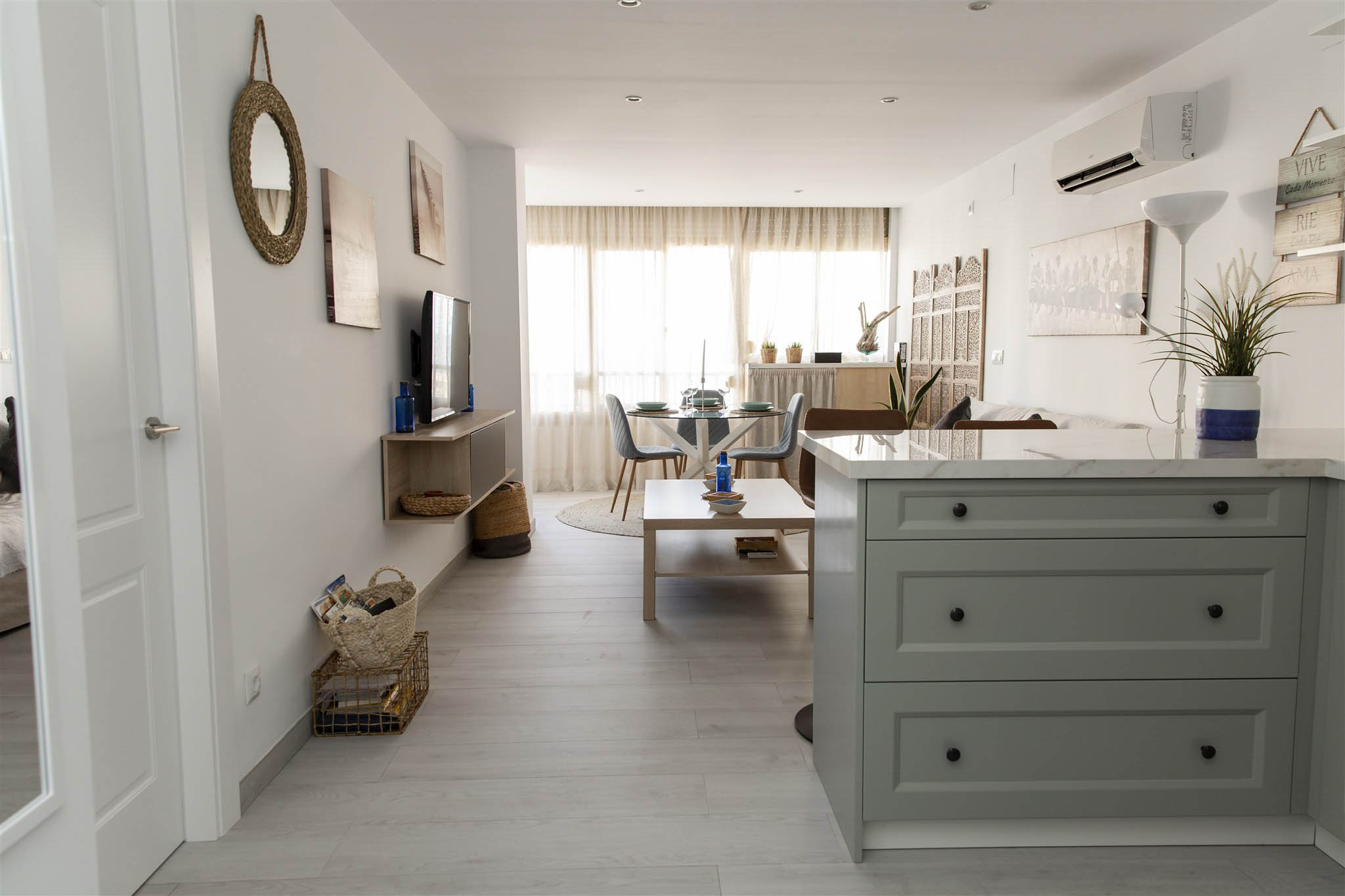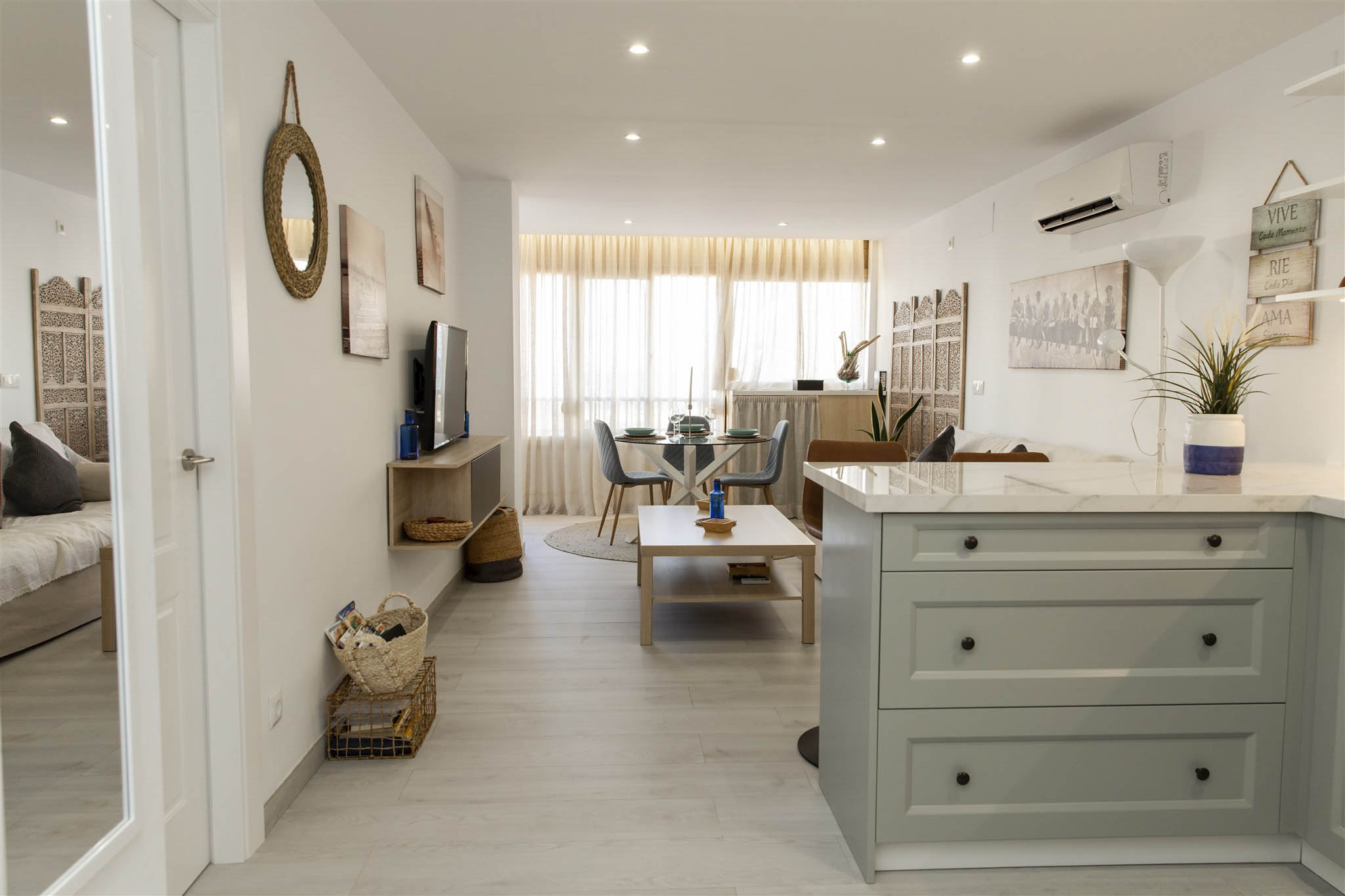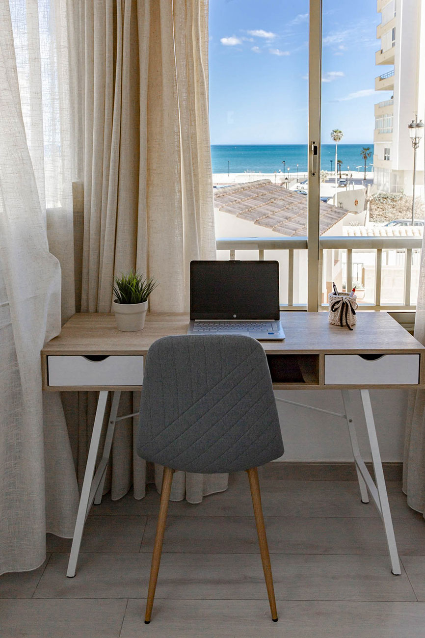Enjoy a cozy apartment by the sea in one of the quietest areas of Fuengirola, with all the essential services just 50 meters from the beach, a train station with direct access to the airport and the main station in Malaga, a market, El Corte Inglés, and other shops.