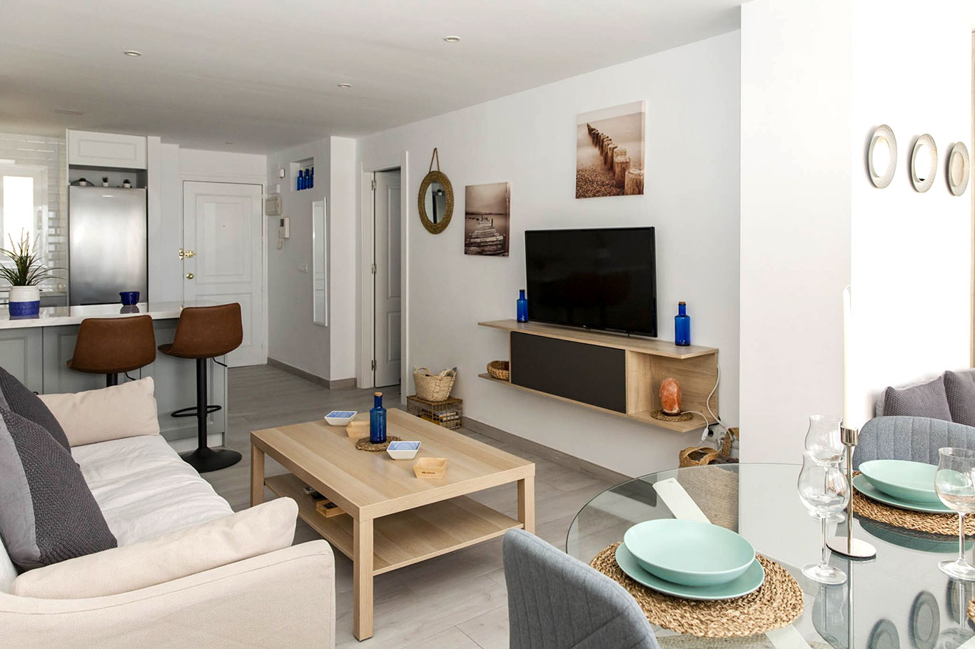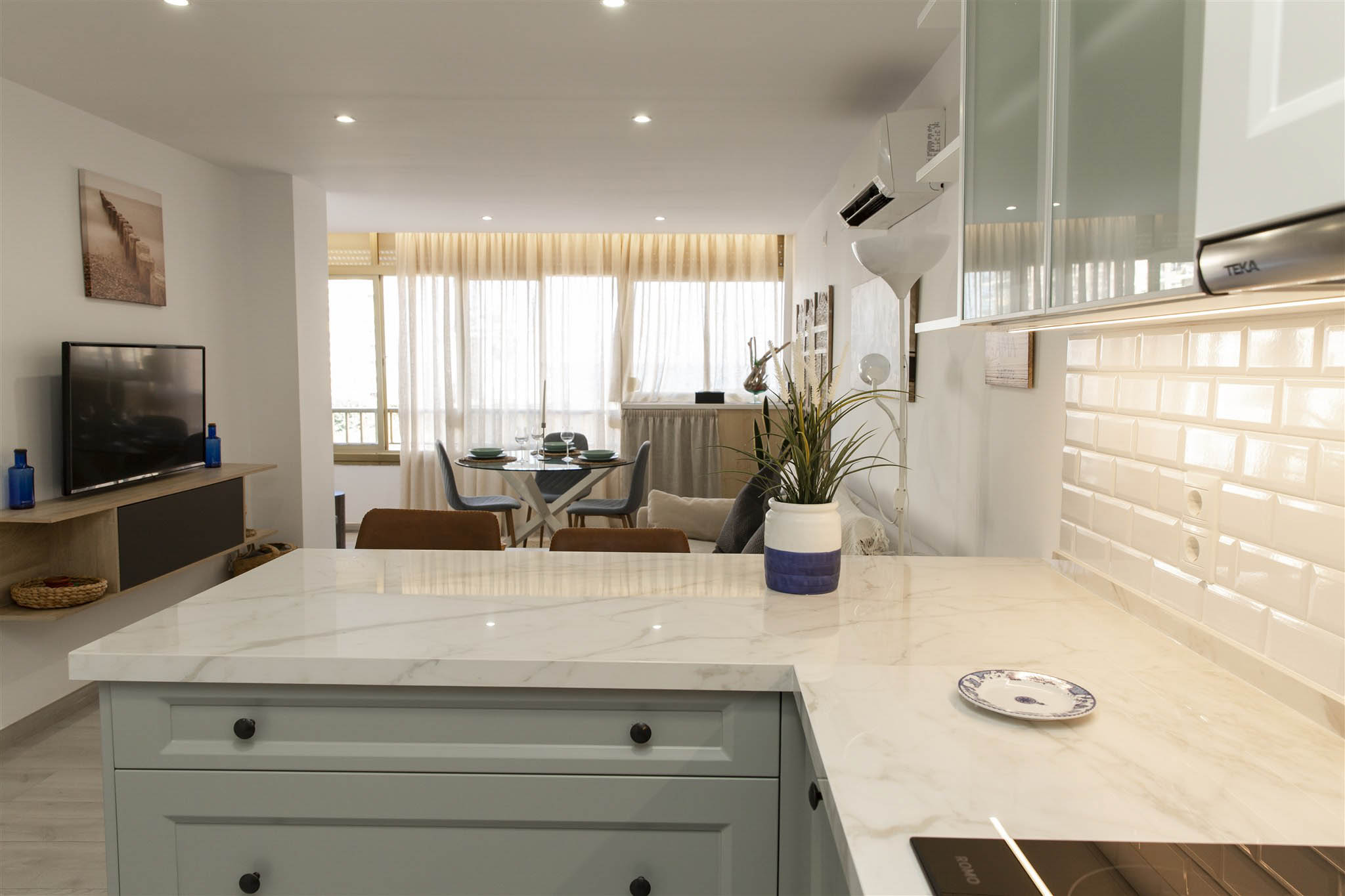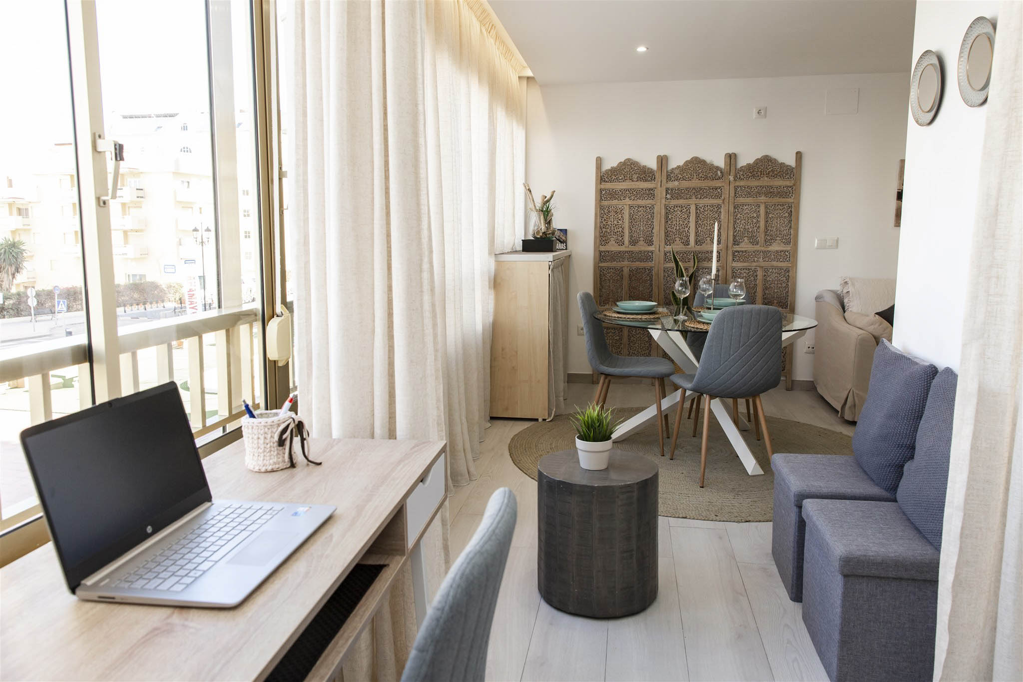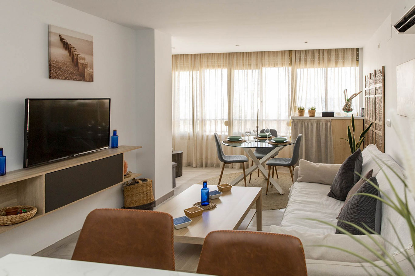 Enjoy a cozy apartment by the sea in one of the quietest areas of Fuengirola, with all the essential services just 50 meters from the beach, a train station with direct access to the airport and the main station in Malaga, a market, El Corte Inglés, and other shops.