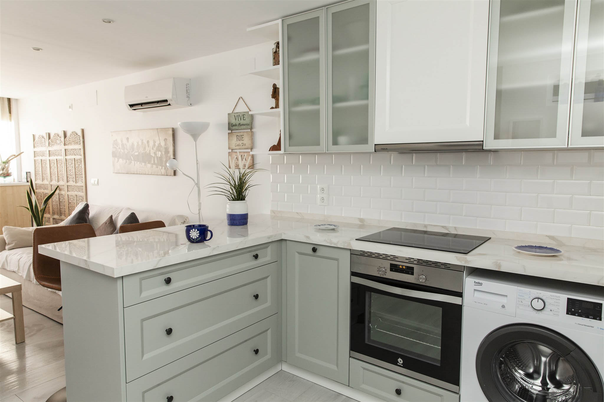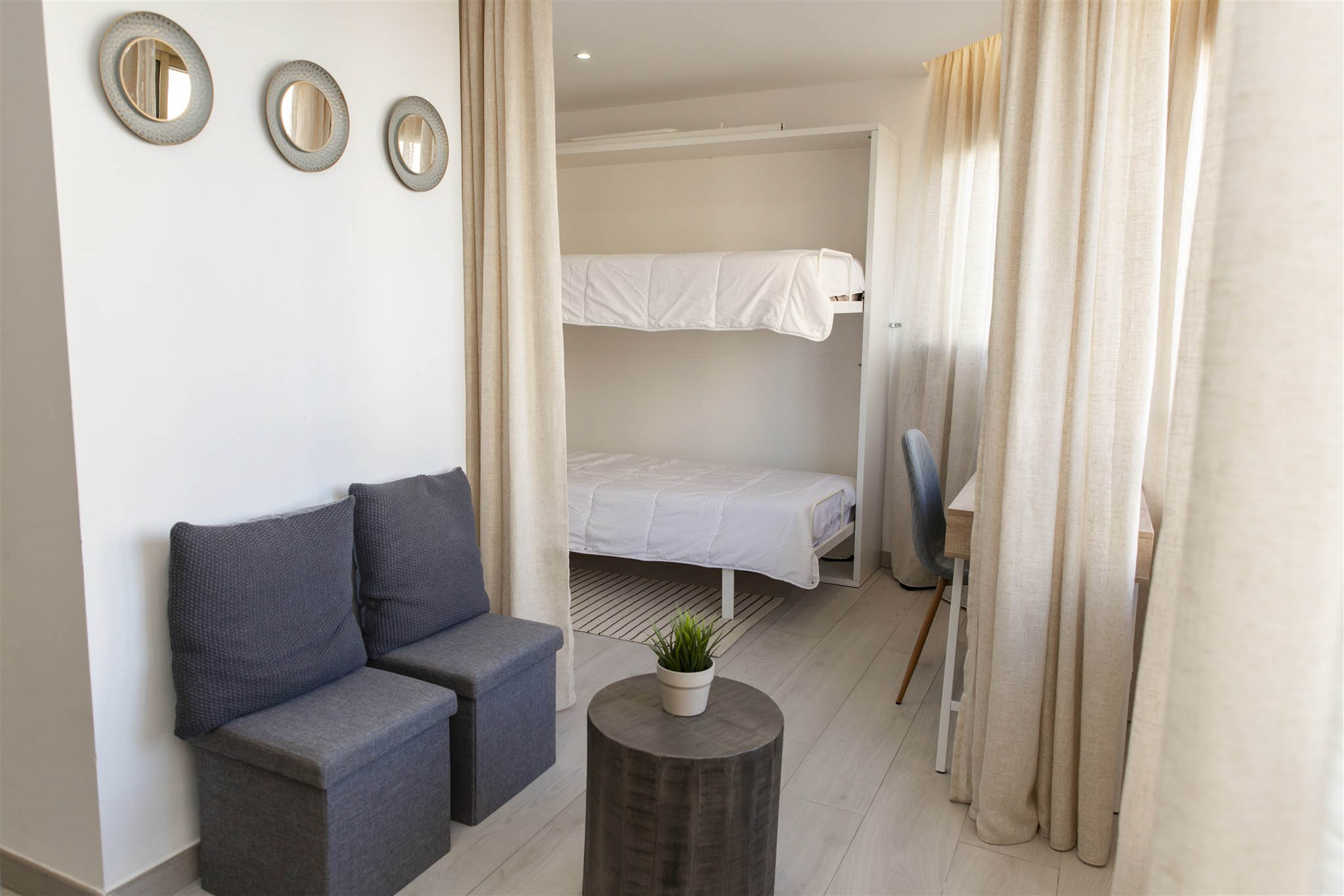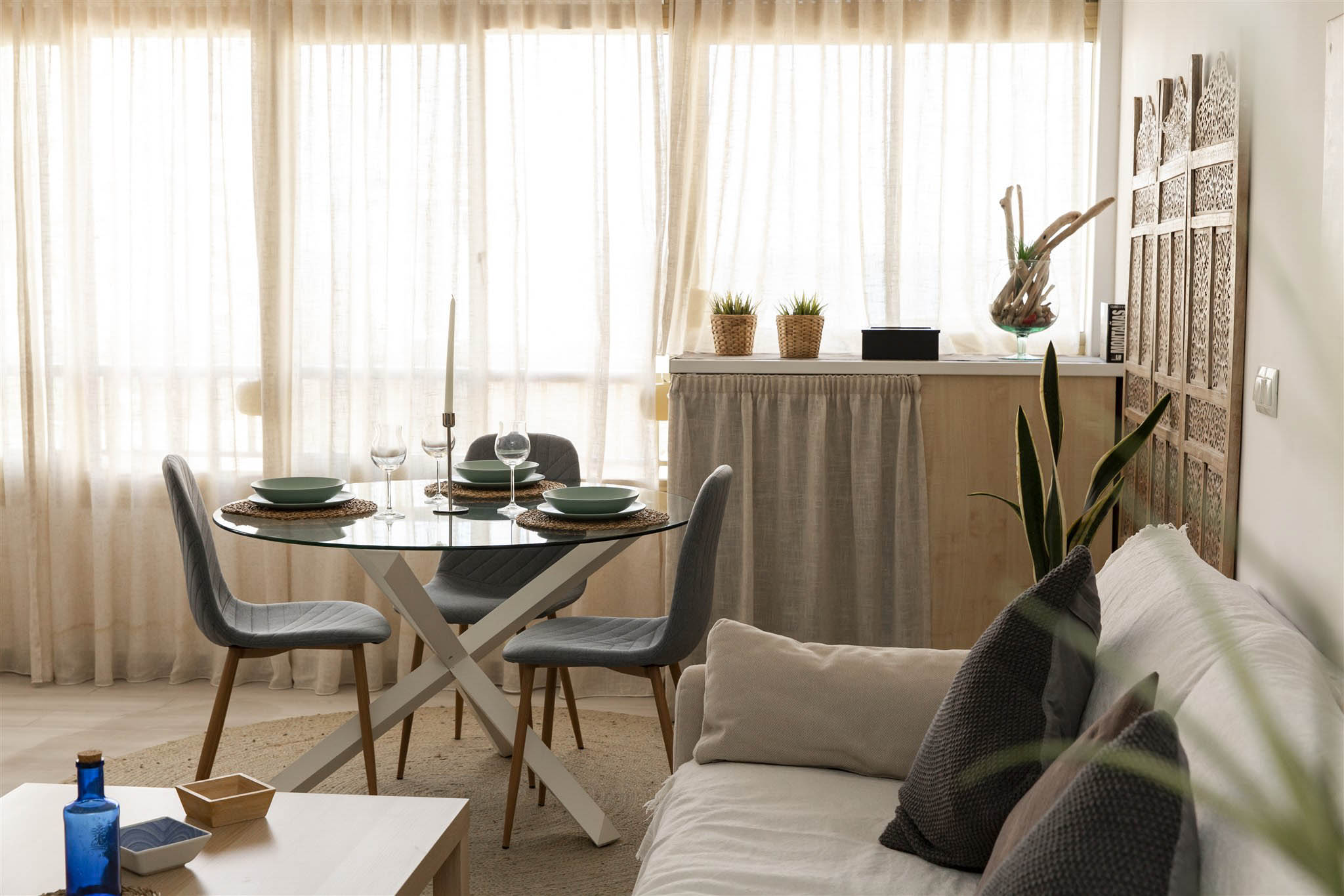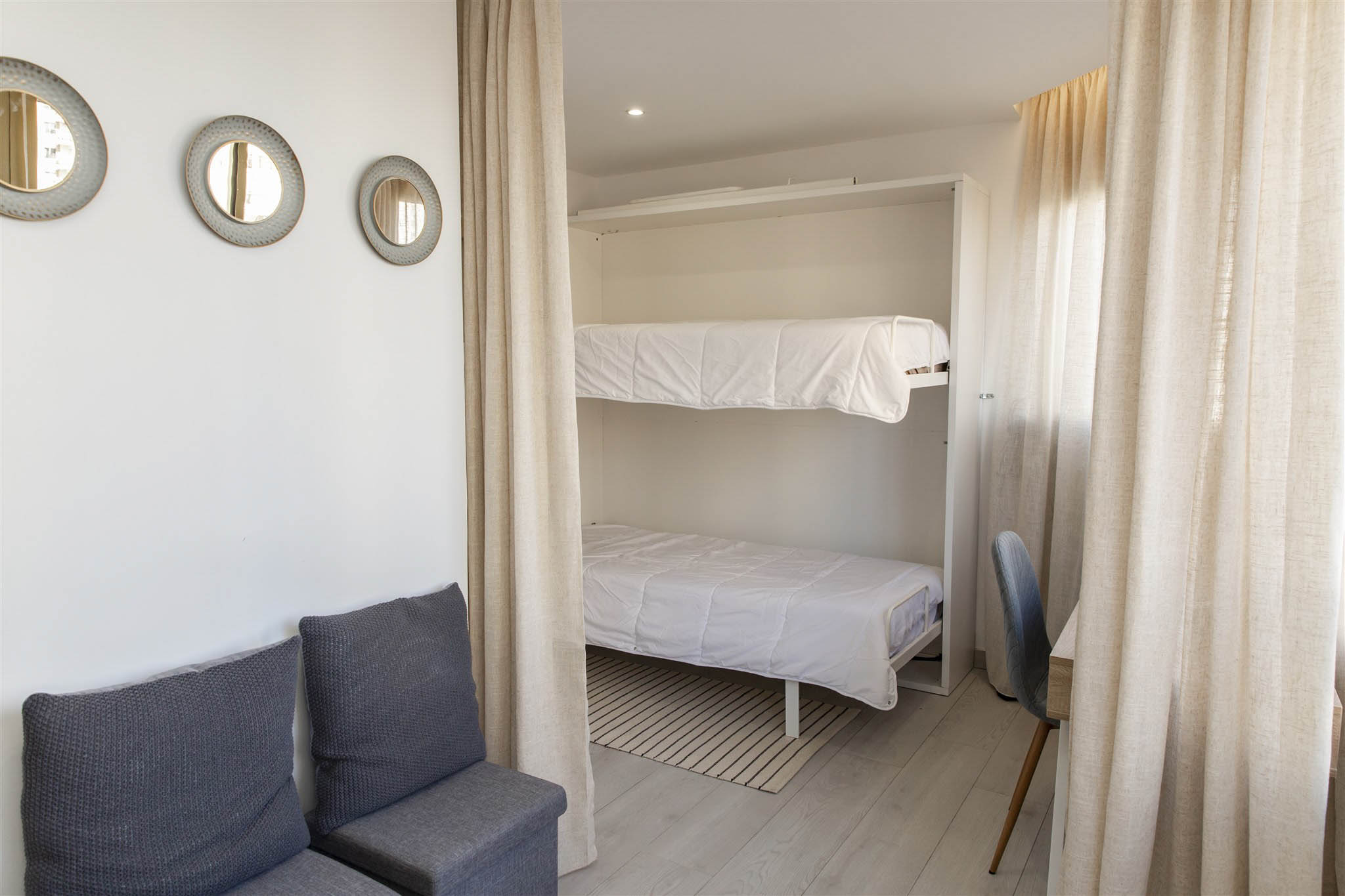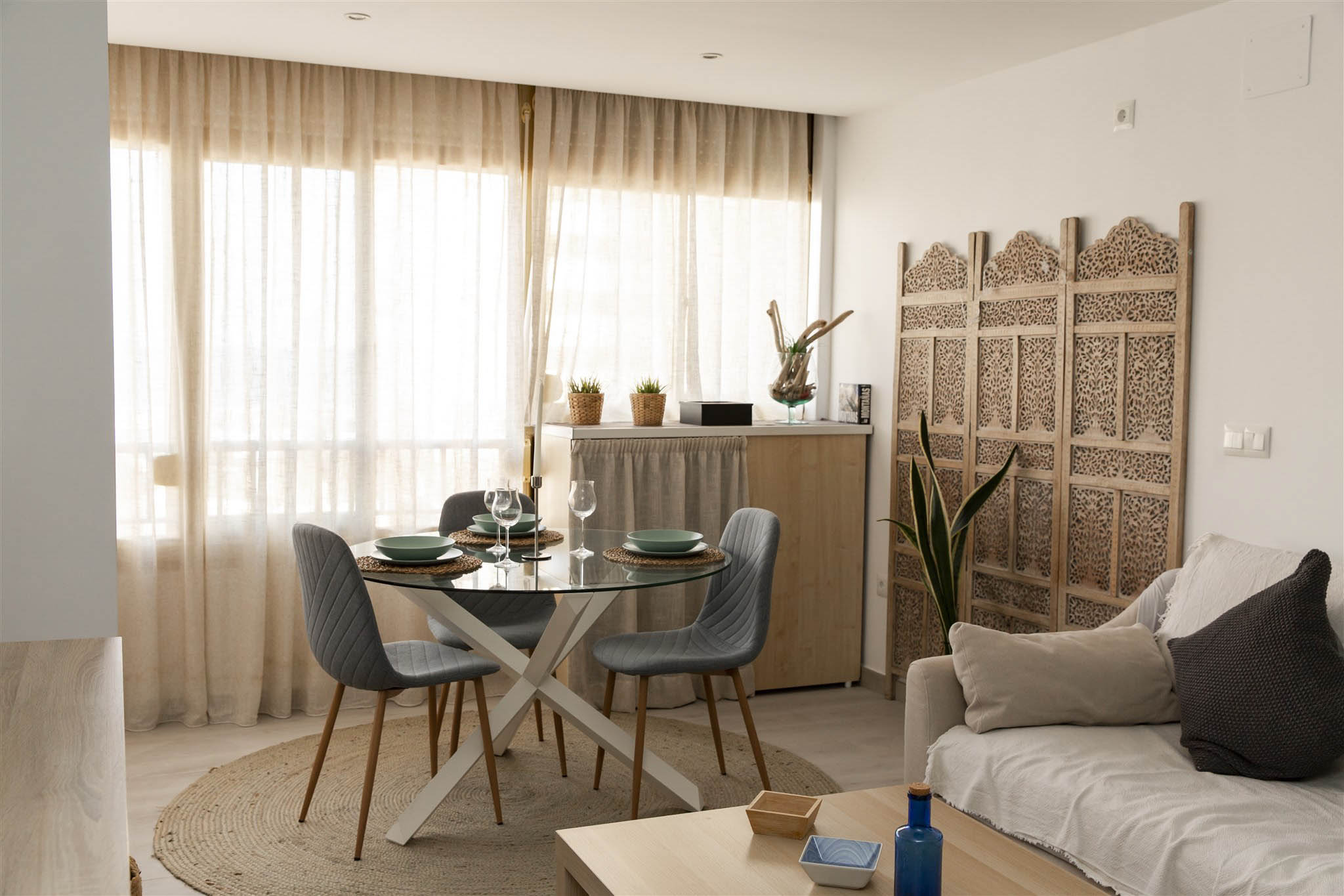 Enjoy a cozy apartment by the sea in one of the quietest areas of Fuengirola, with all the essential services just 50 meters from the beach, a train station with direct access to the airport and the main station in Malaga, a market, El Corte Inglés, and other shops.