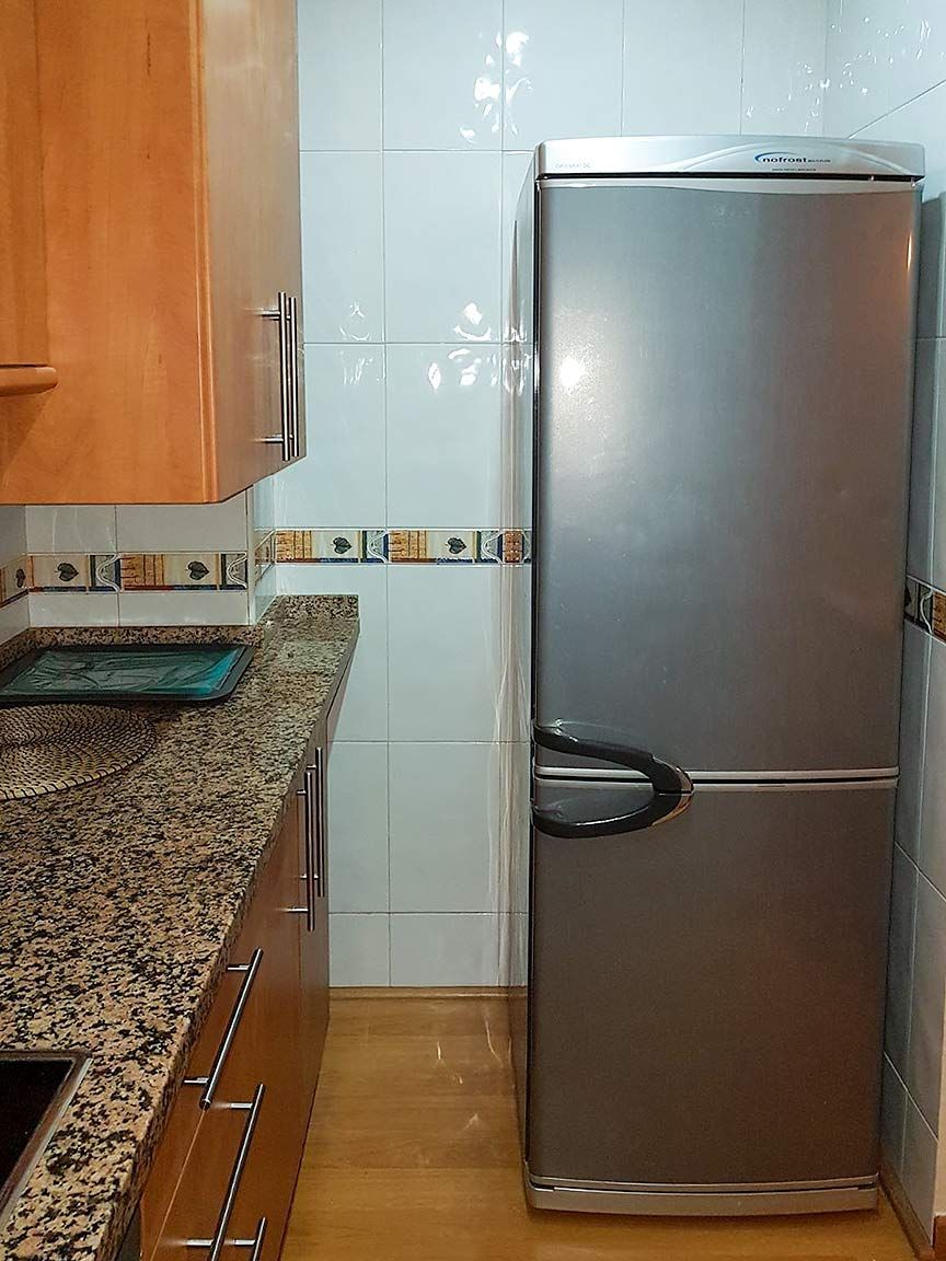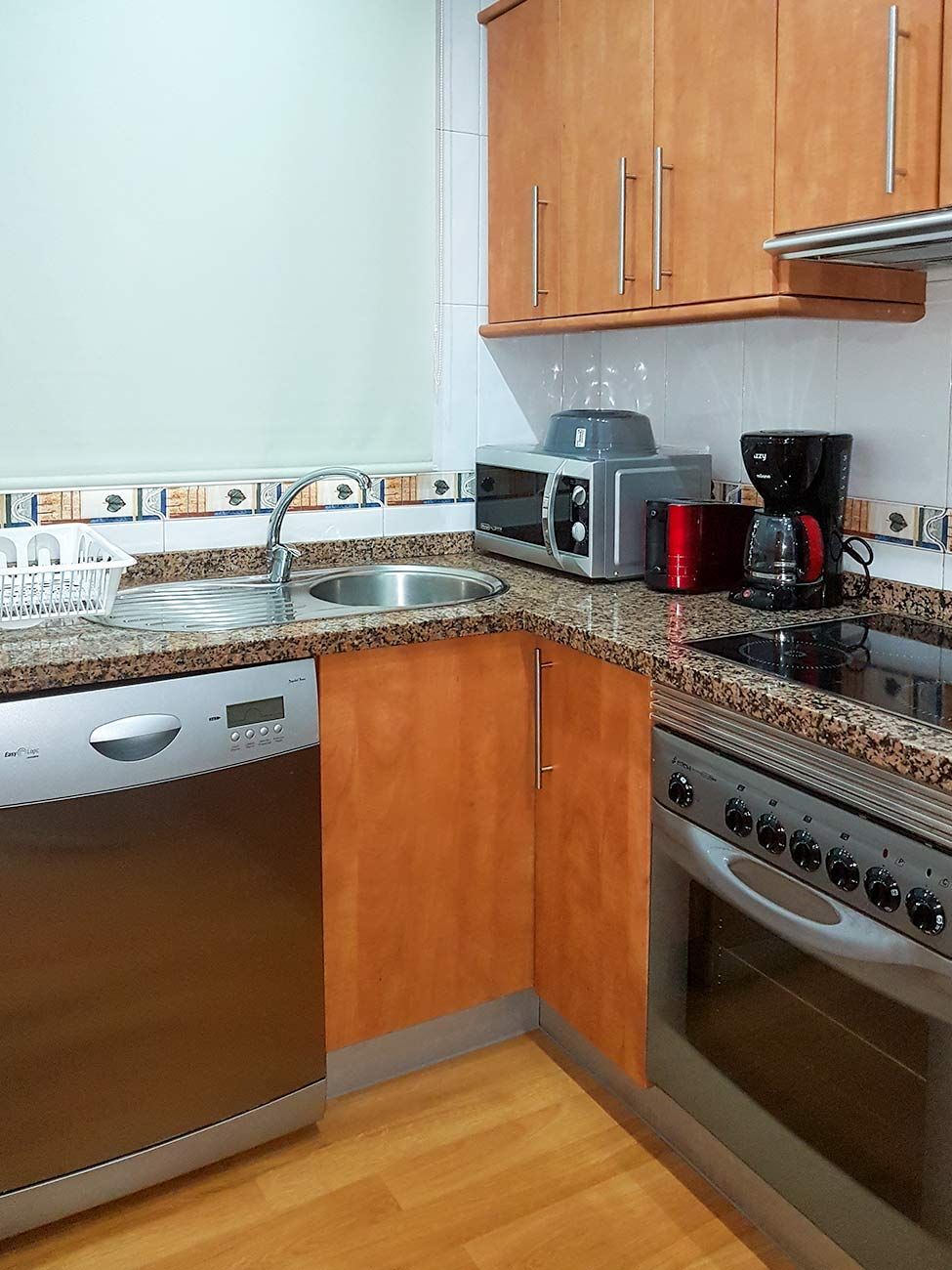 Open plan kitchen equipped with ceramic hob, microwave, coffee maker, toaster, full bathroom, living-dining room with sofa bed and flat screen TV, large built-in wardrobe, double bed, air conditioning (hot and cold) in the living room, ceiling fan in the bedroom and living room. LED lighting throughout the apartment. Small, quiet, and family-friendly building. Pets are not allowed. Smoke-free home. Employment contract, last tax return, last two payslips, and references are required. Security deposit of 1 month, additional guarantee of €300.
