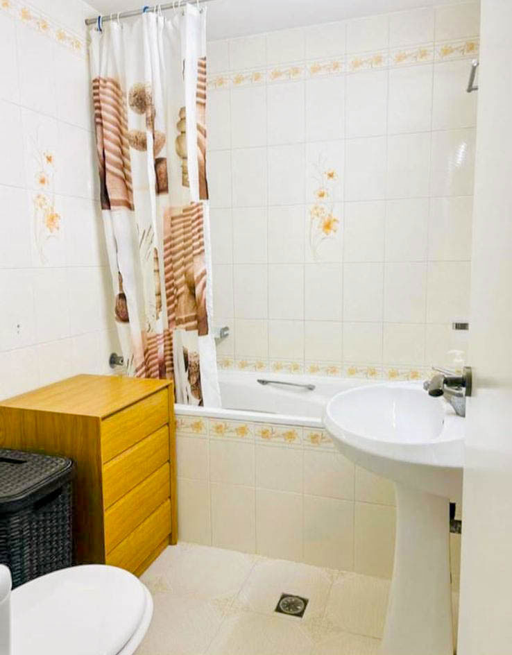 Beautiful apartment in the 2nd line of the beach (50m) in Carihuela Park Palace (Torremolinos). Gated community with parking, reception, and security. It has a tennis court, bar restaurant, summer entertainment, supermarket, vending machines, 3 swimming pools (1 for children) open all year round, green areas, and a playground. 60 meters, 1 very spacious bedroom, 1 bathroom, equipped kitchen, living-dining room, and 2 terraces. TV, washing machine, and air conditioning.