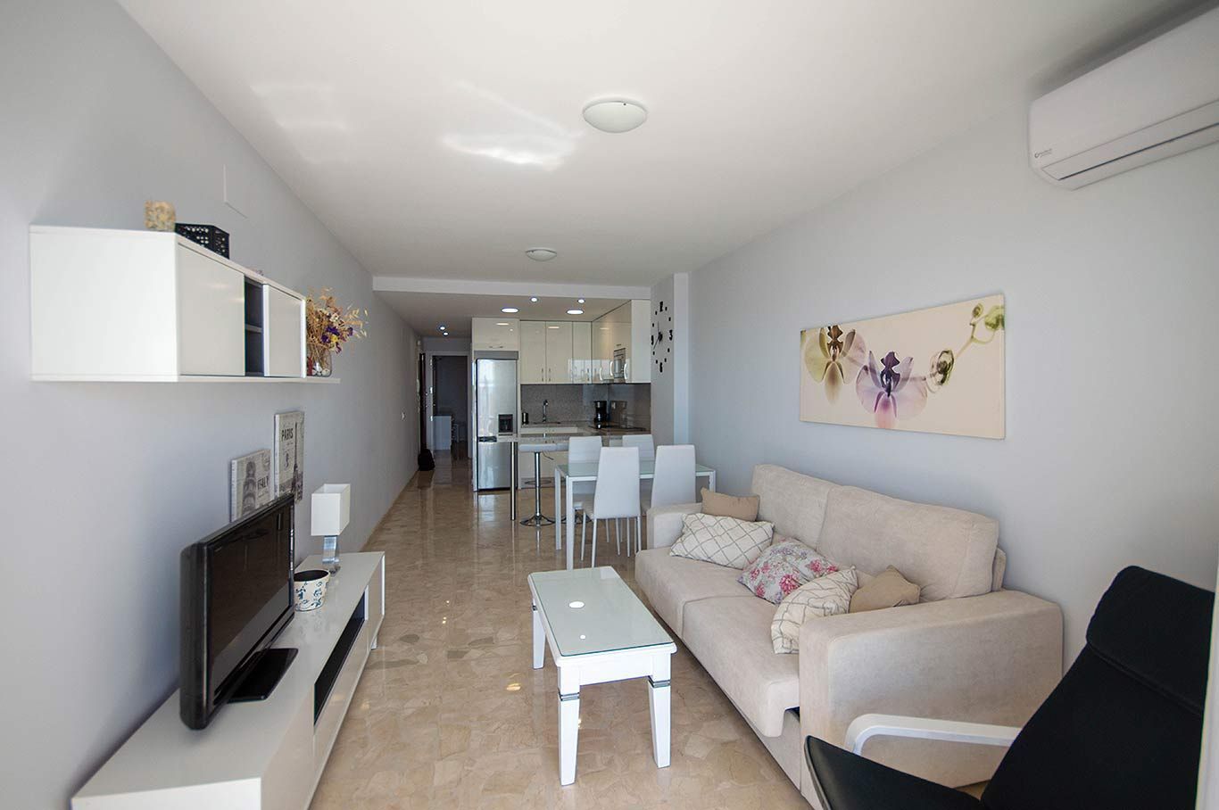 It has air conditioning (cold/heat), sofa bed, and wifi installed in the living room