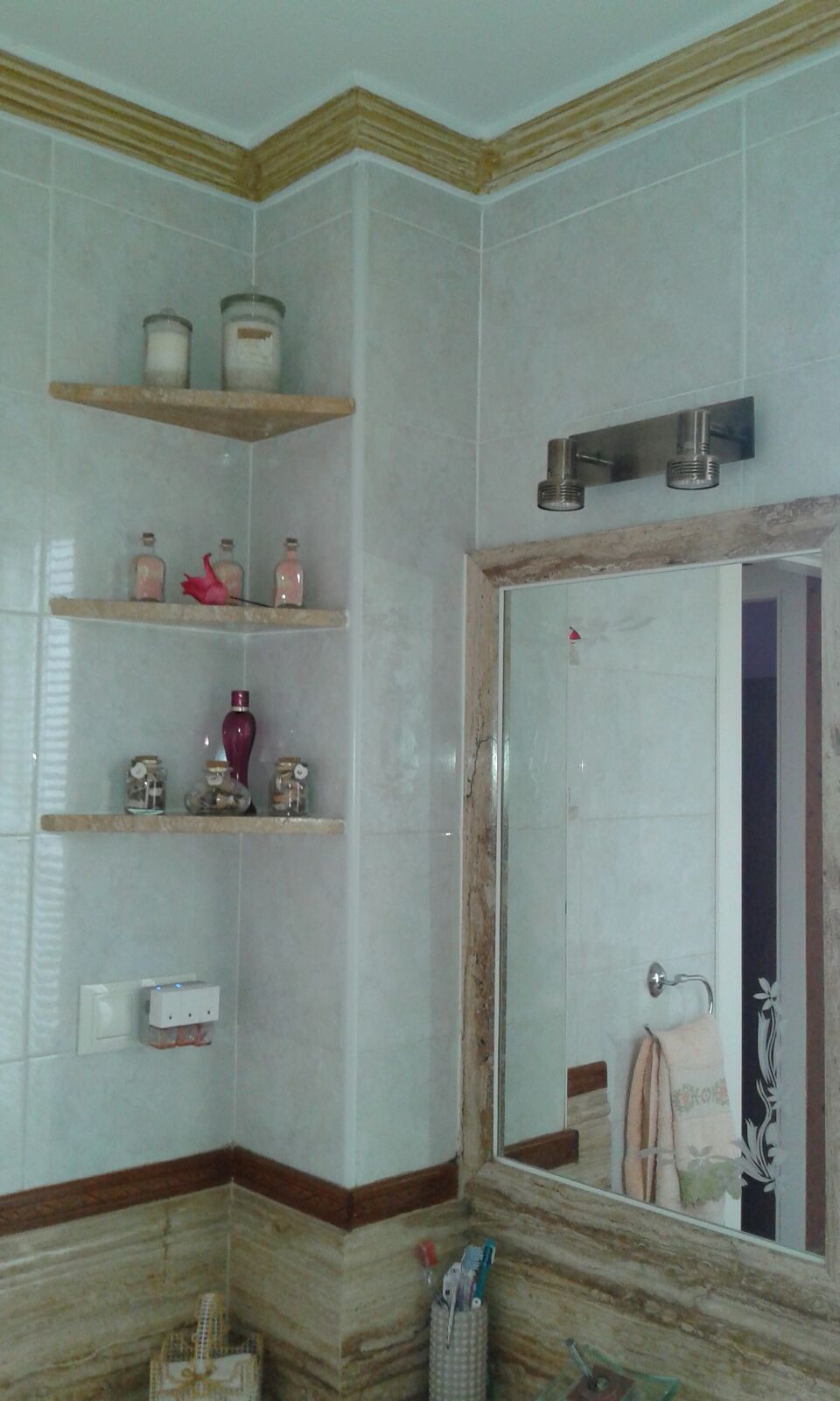 It has a storage room, fireplace, beautiful tiles in the bathroom and kitchen.
