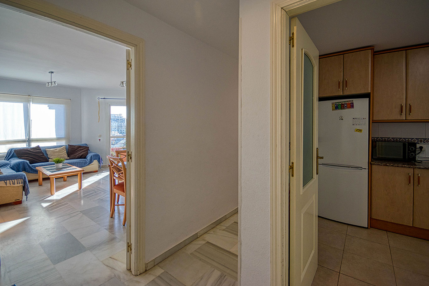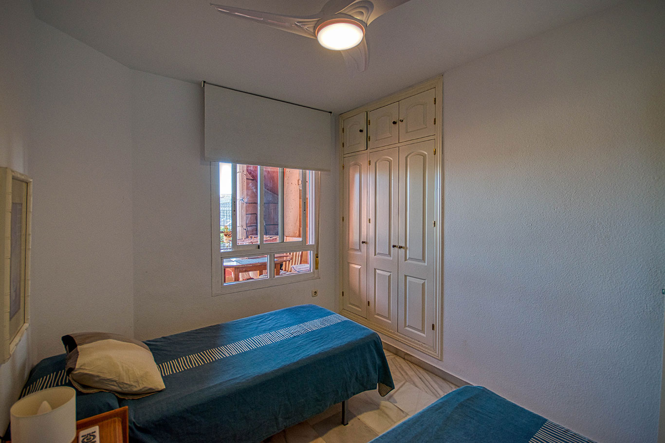 Beautiful penthouse near the beach, fully furnished with sea and mountain views, featuring 2 terraces and a solarium, located in a gated community with a concierge, paddle court, security cameras, swimming pool, gardens, lifeguard, private garage, 4 single beds and 1 double bed with bathroom, fully equipped kitchen with dishwasher, ready for your family vacation. Beach about 100 meters away. 8th Floor
