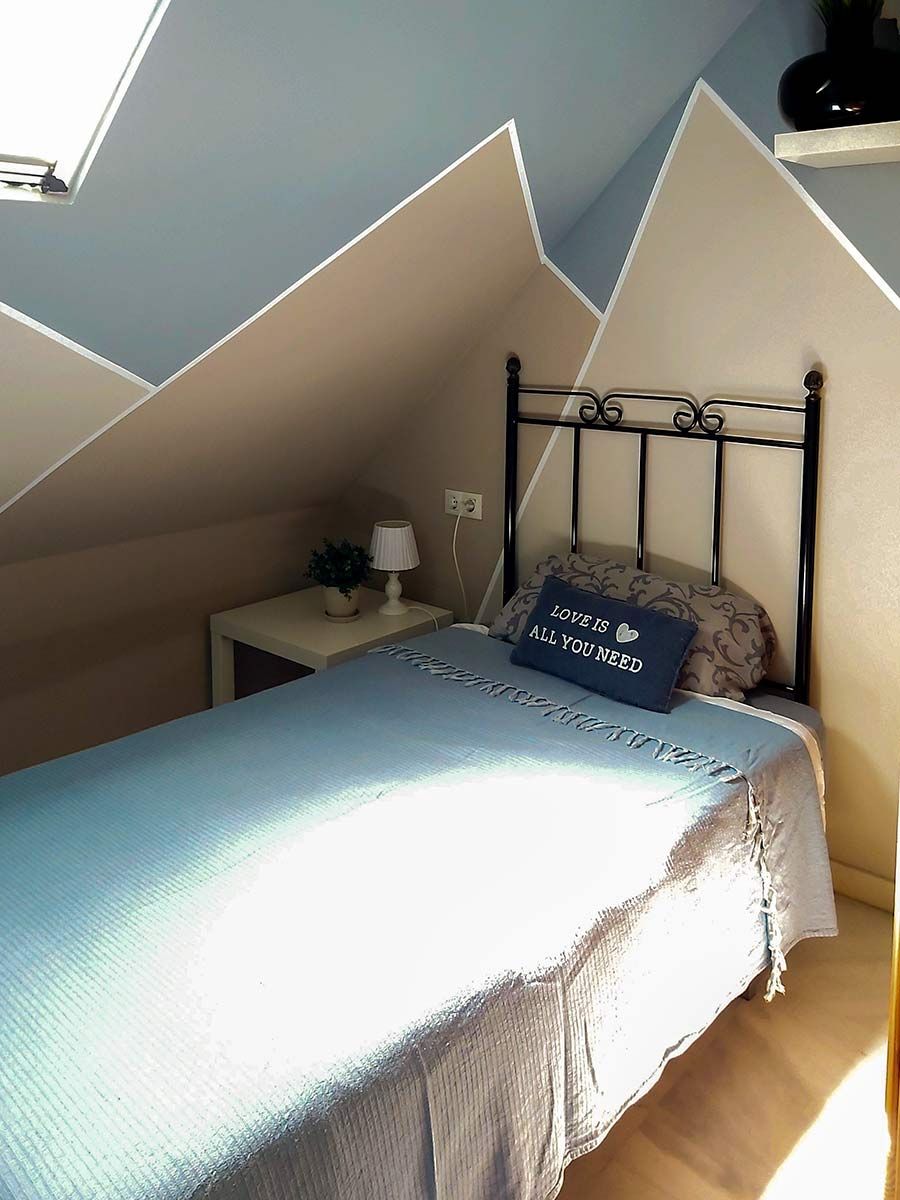 Beautiful two-bedroom attic apartment, open kitchen, living room, and full bathroom. Air conditioning and elevator. Next to the promenade of Los Boliches (Yaramar Hotel Area). Double bed and 105 cm bed. Bathroom with fully renovated and equipped shower. Fully equipped open kitchen. Flat screen TV. Electric heater. Ceramic hob.