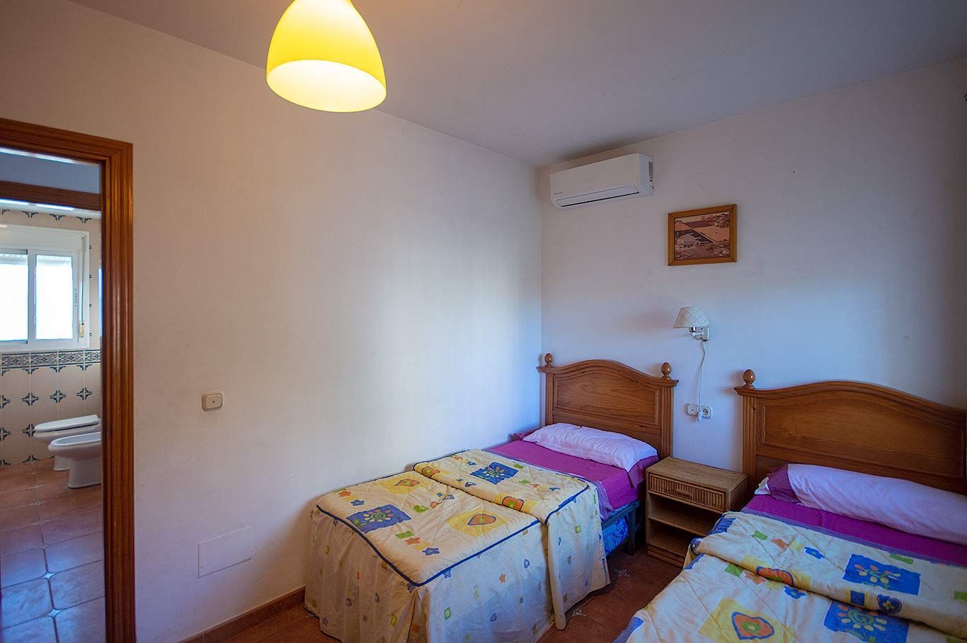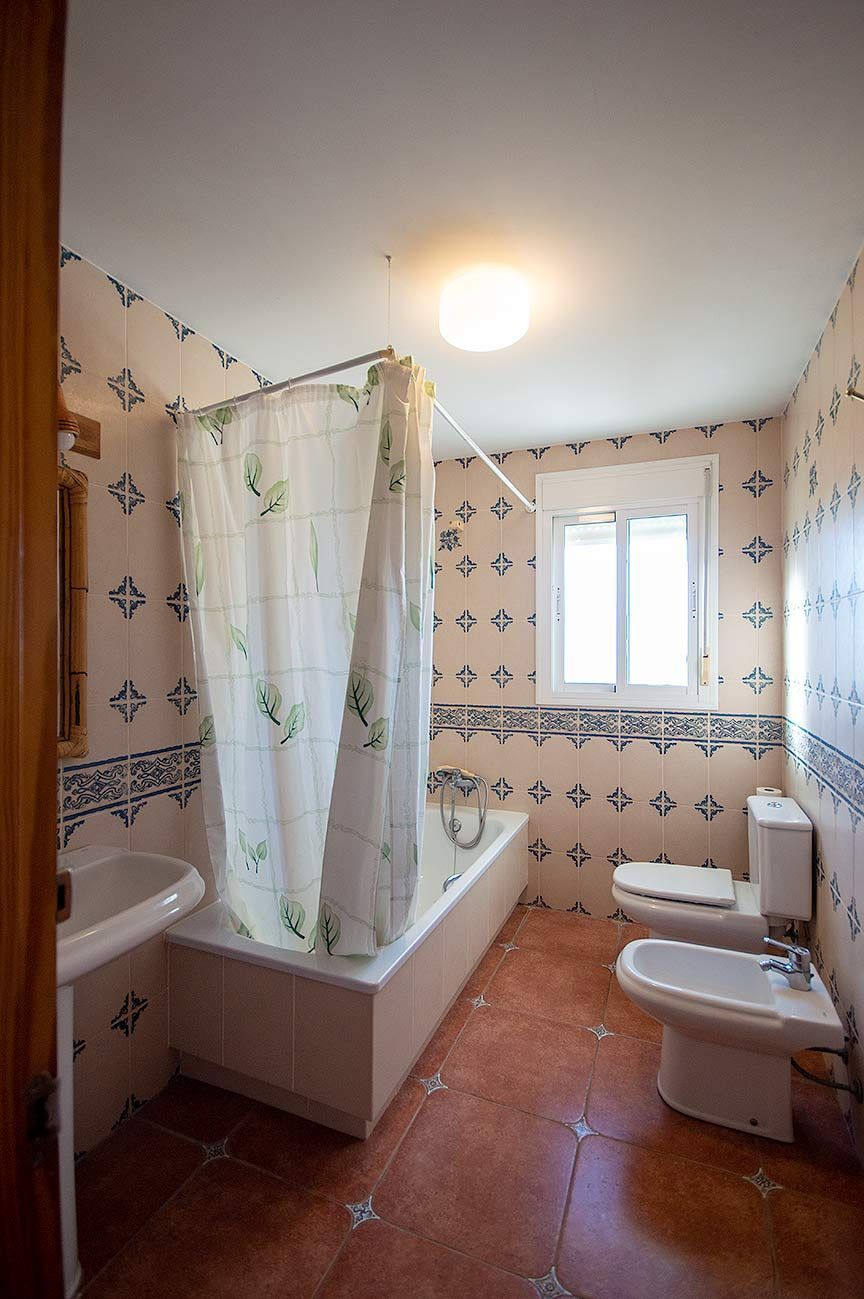 On the upper floor are the 3 bedrooms, 2 of them with single beds and the main one with a double bed and en-suite bathroom, one of the bathrooms with a bathtub and the other with a shower.