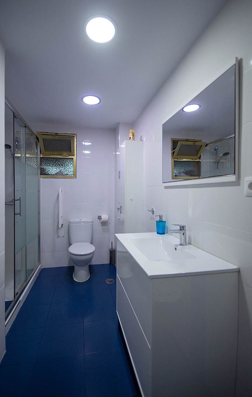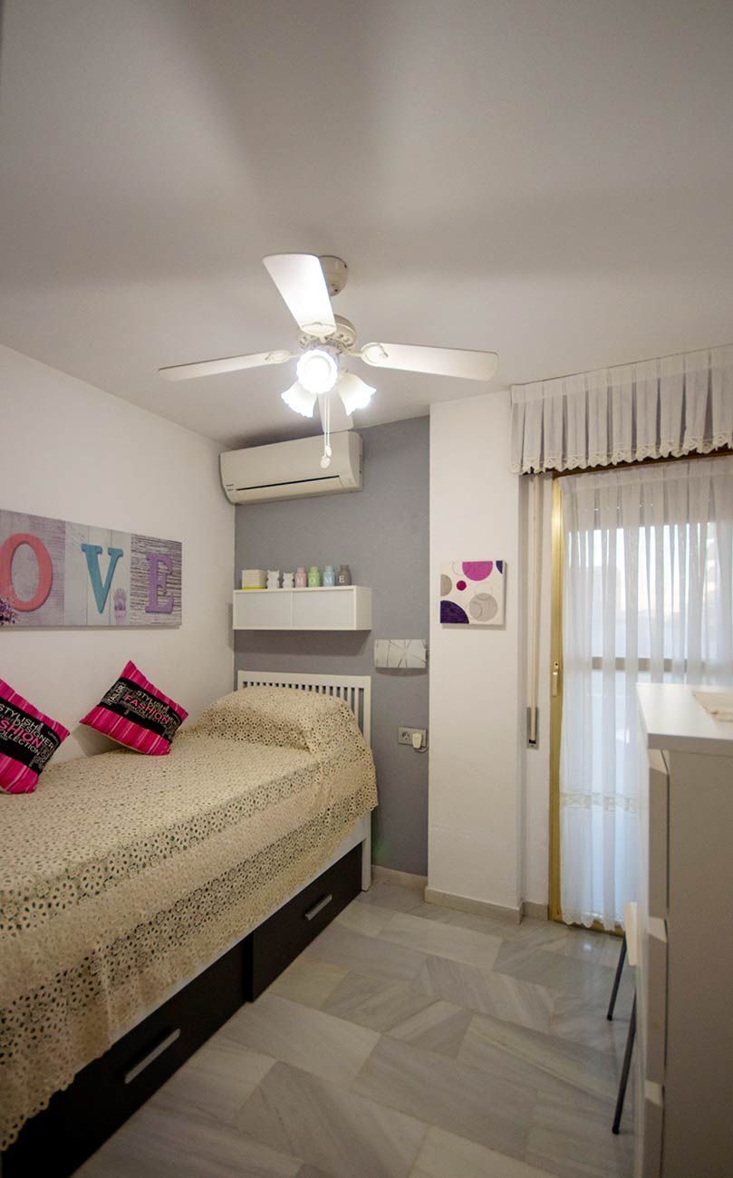 The bathroom is spacious, with a modern shower tray. Additionally, there is a second bedroom with a single bed.