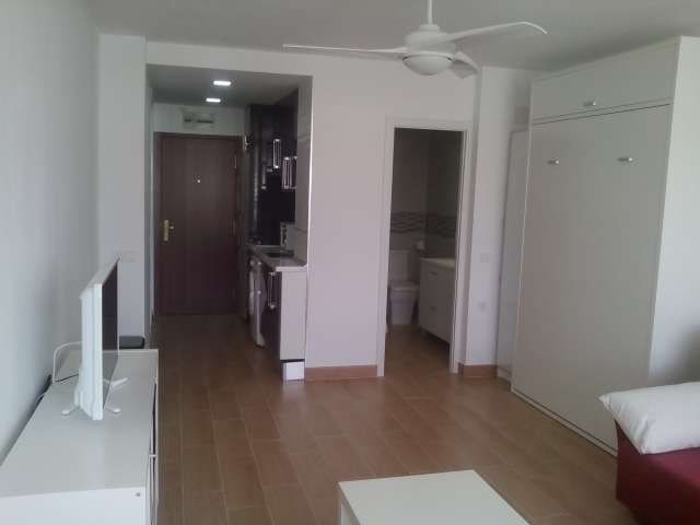 Brand new, all accessories, complete kitchen (microwave, washing machine, fridge freezer), bathroom with hydro massage column, air conditioning, ceiling fan, double glazing, and blinds. It has a double bed of 1.35 for two people, and a sofa bed of 1.35 for two people. Complex with pool and restaurant, located 500 meters from the beach. Mezzanine. Elevator. Furnished. Heating. Pool.