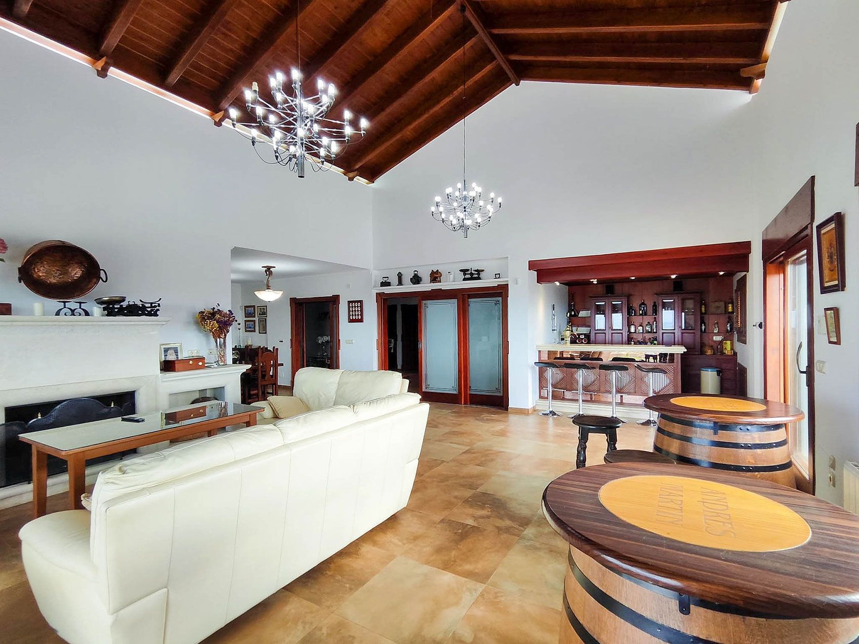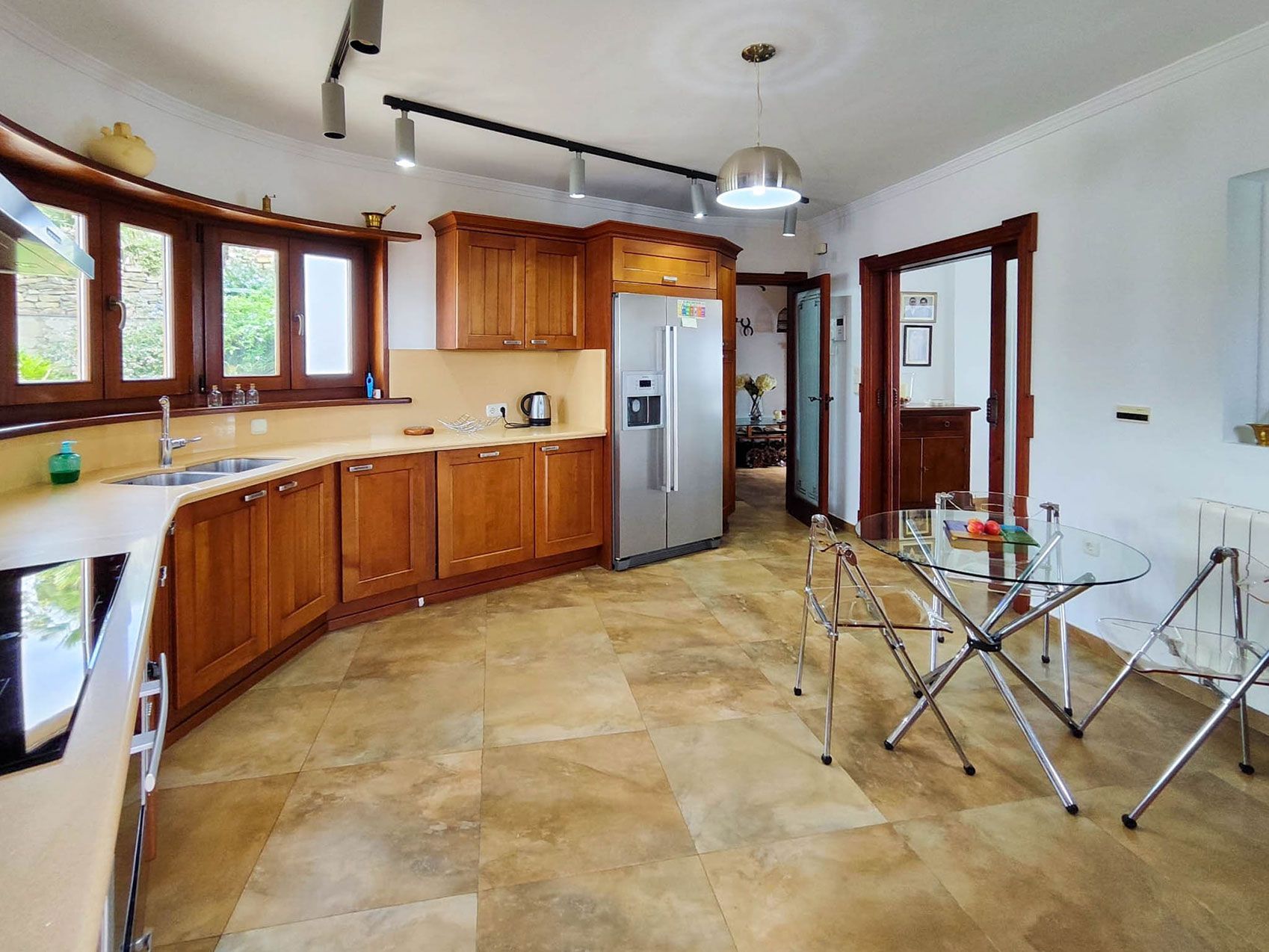 The main house extends over 492 m² built and sits on a 10-hectare plot, surrounded by 3200 olive trees in full production, benefiting from EU subsidies. Its design, which combines elegance and noble materials, includes on the ground floor a large pool, a spacious porch with views of the mountains and the olive grove, a barbecue area, and a meticulously maintained garden with an automatic irrigation system. The interior houses a living-dining room with a fireplace, an independent kitchen, two double bedrooms, three bathrooms, a laundry room, and storage rooms.