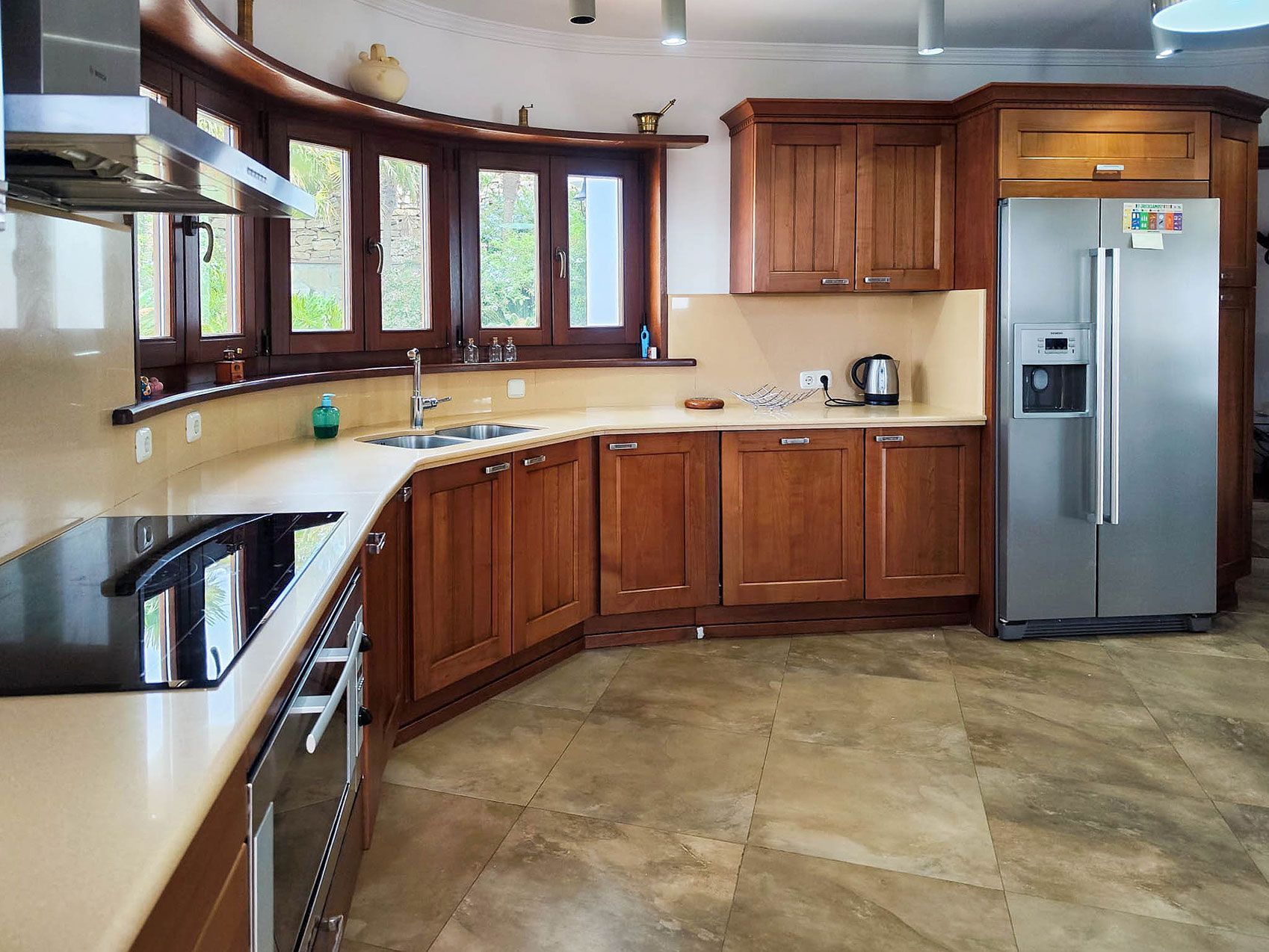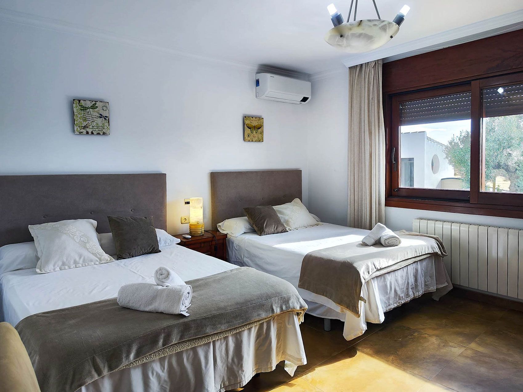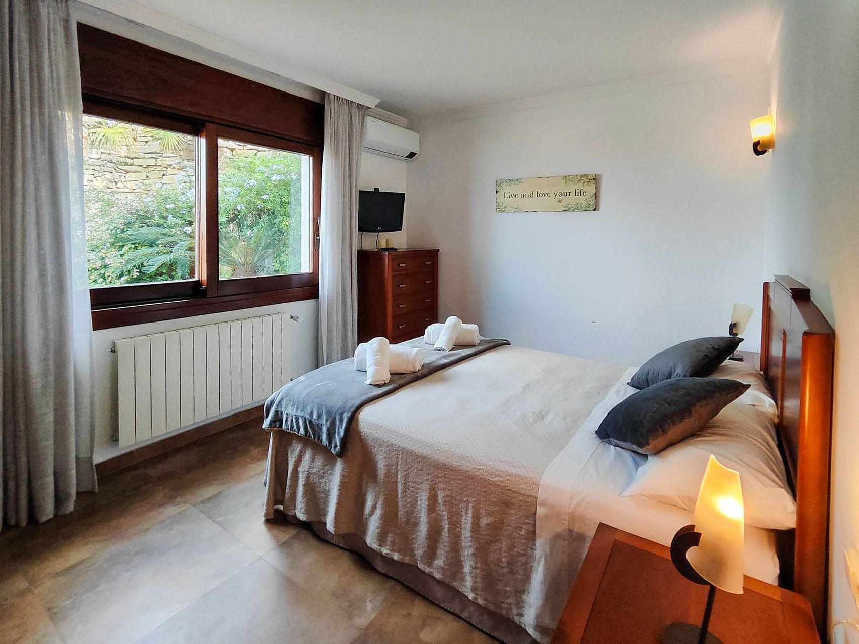 The first floor offers a private retreat with four double bedrooms, all with built-in wardrobes and ensuite bathrooms. The master suite, a true sanctuary, features a jacuzzi, private bathroom, and its own terrace, offering an exclusive getaway within the house. A cold/heat air conditioning system ensures comfort in all seasons.