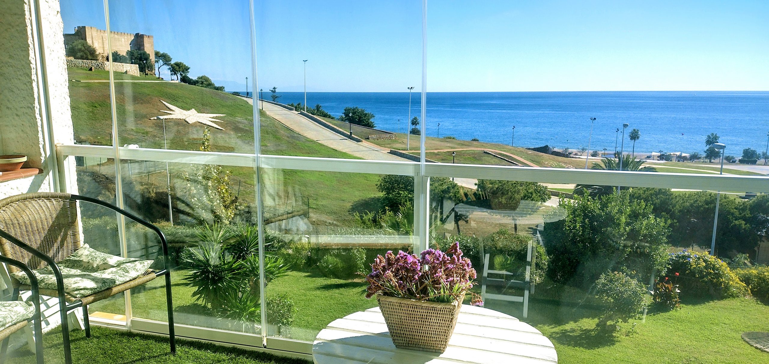 The apartment features Lumon sliding windows, allowing uninterrupted views and providing excellent sound insulation, minimizing noise from the nearby highway. The main terrace is ideal for relaxing and enjoying the views of the sea and the castle.