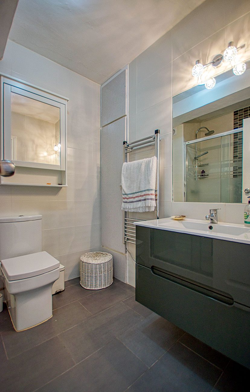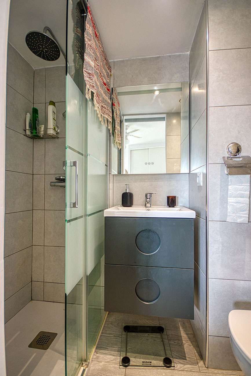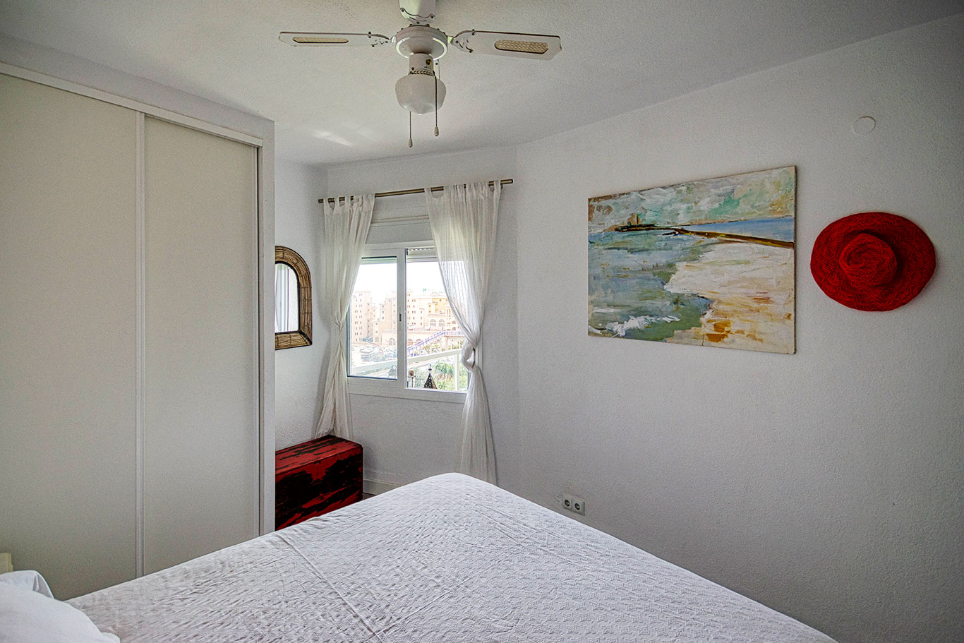 Located in a privileged area of Fuengirola, this modern vacation apartment on the second floor (no elevator) offers spectacular views of the Mediterranean Sea and Sohail Castle from its spacious main terrace, facing southeast. The property has 2 bedrooms and 2 bathrooms, one of which is en suite in the master bedroom, both with shower trays.