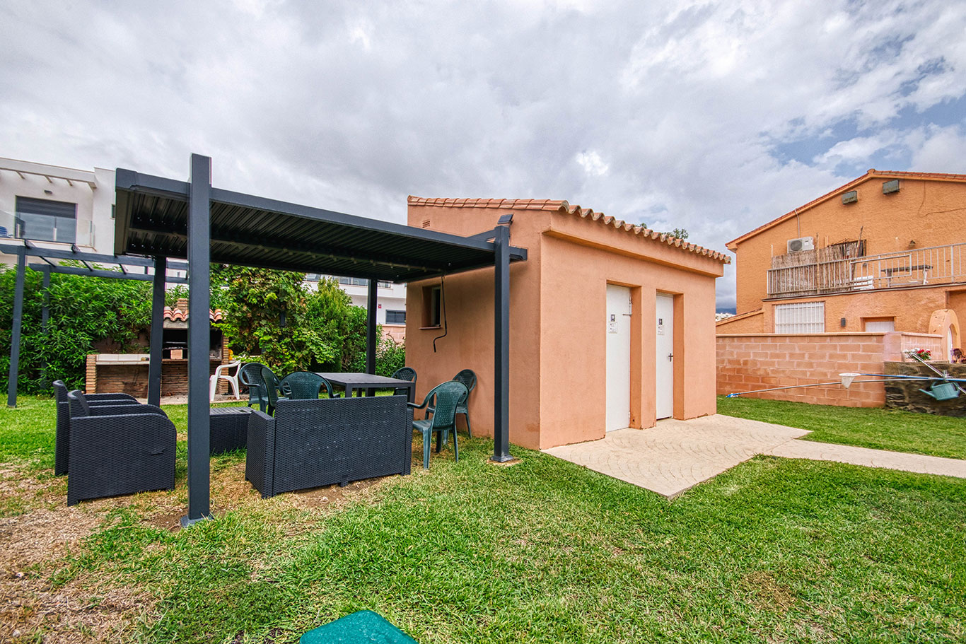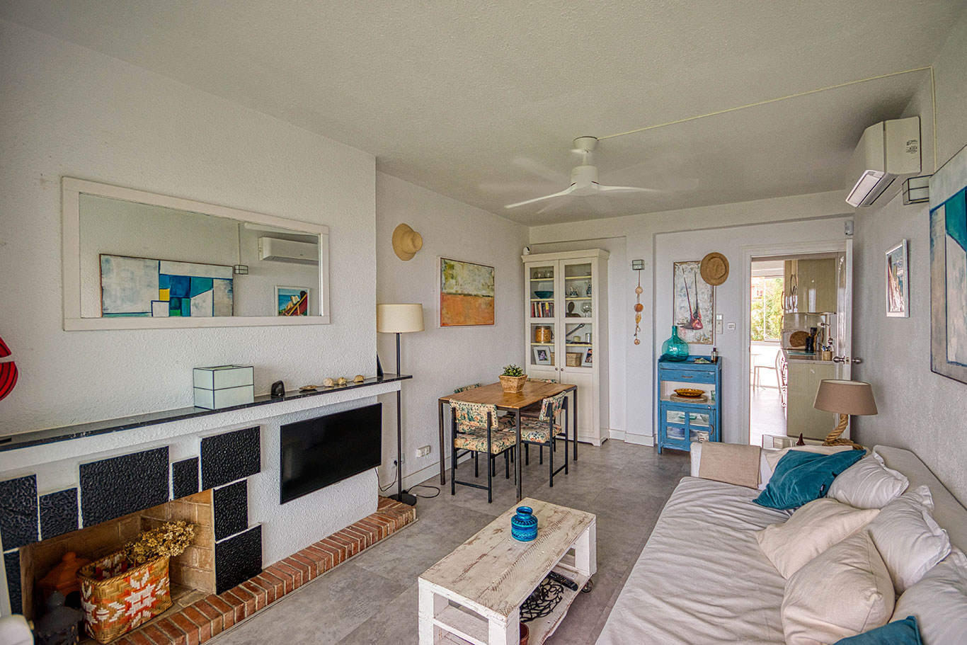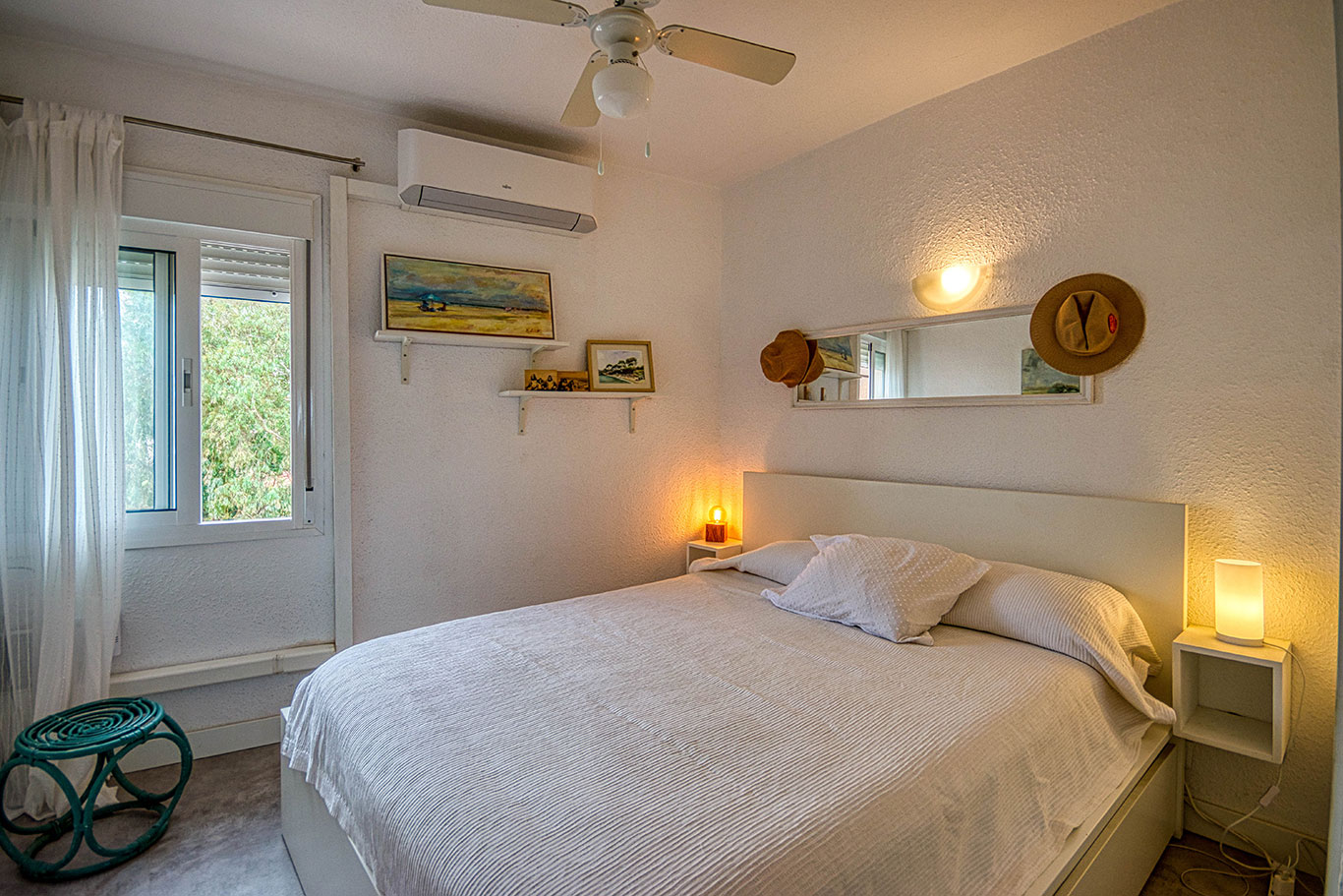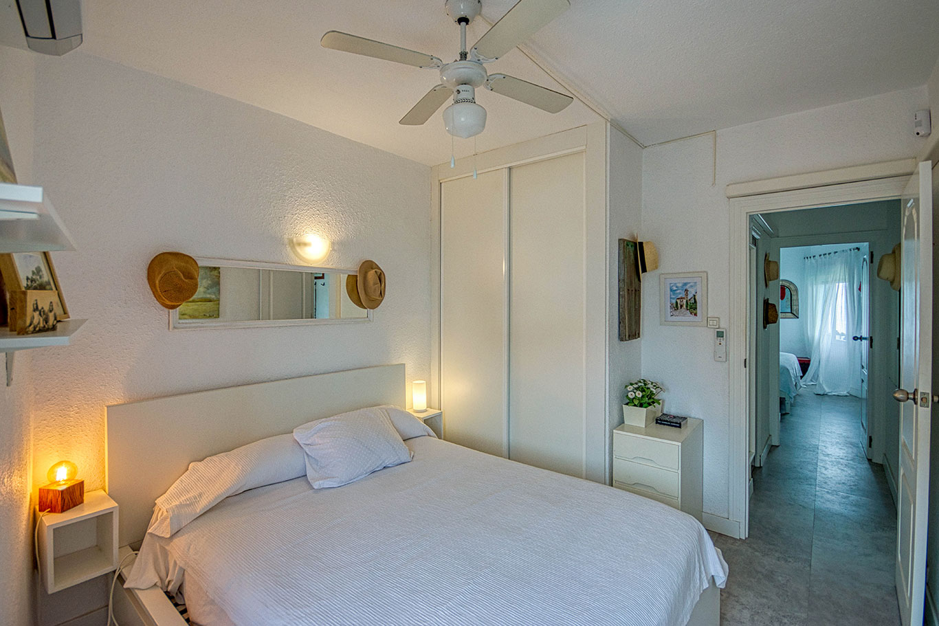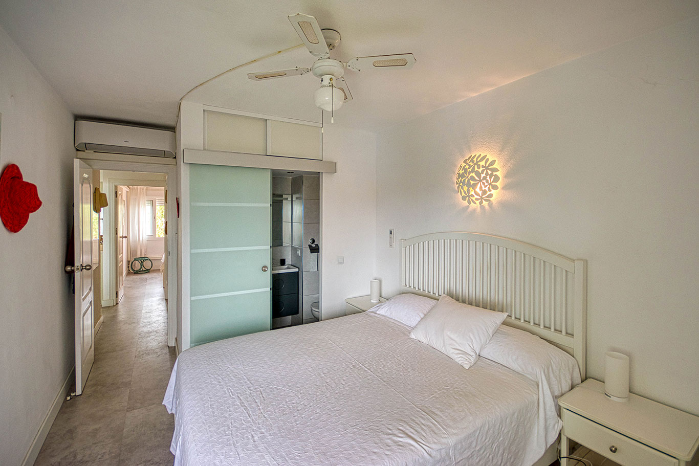 The apartment has air conditioning in all rooms and ceiling fans, ensuring a pleasant environment throughout the year. The building offers a communal pool with showers and toilets, as well as a garden with barbecue space and furniture, perfect for outdoor enjoyment.