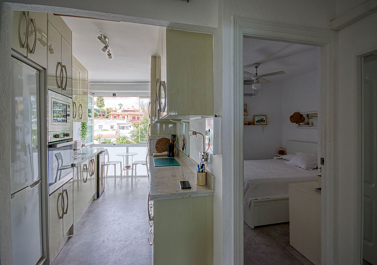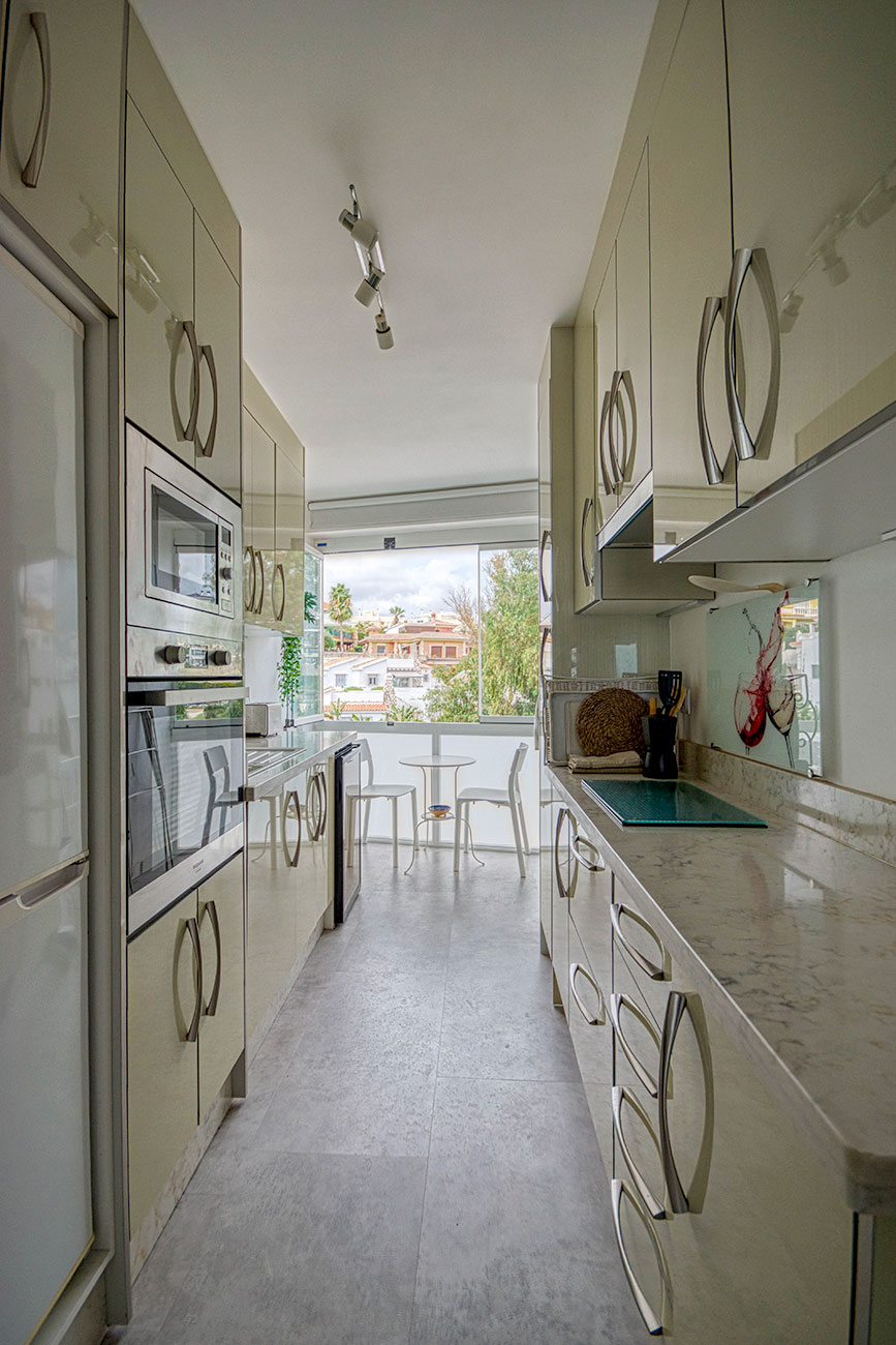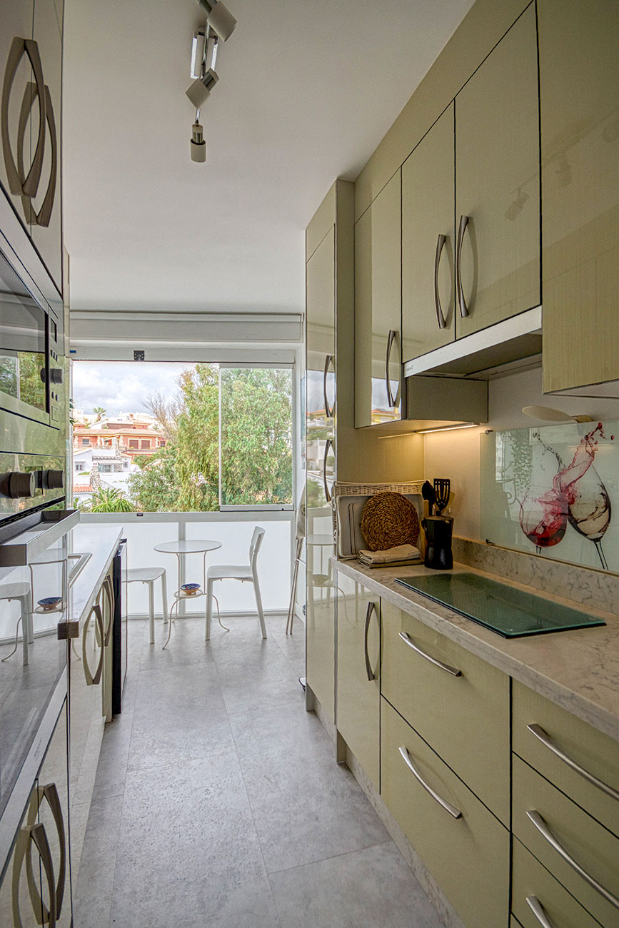 The kitchen is fully equipped and has a small table and chairs, where you can watch the sunset with views of the Mijas mountains.