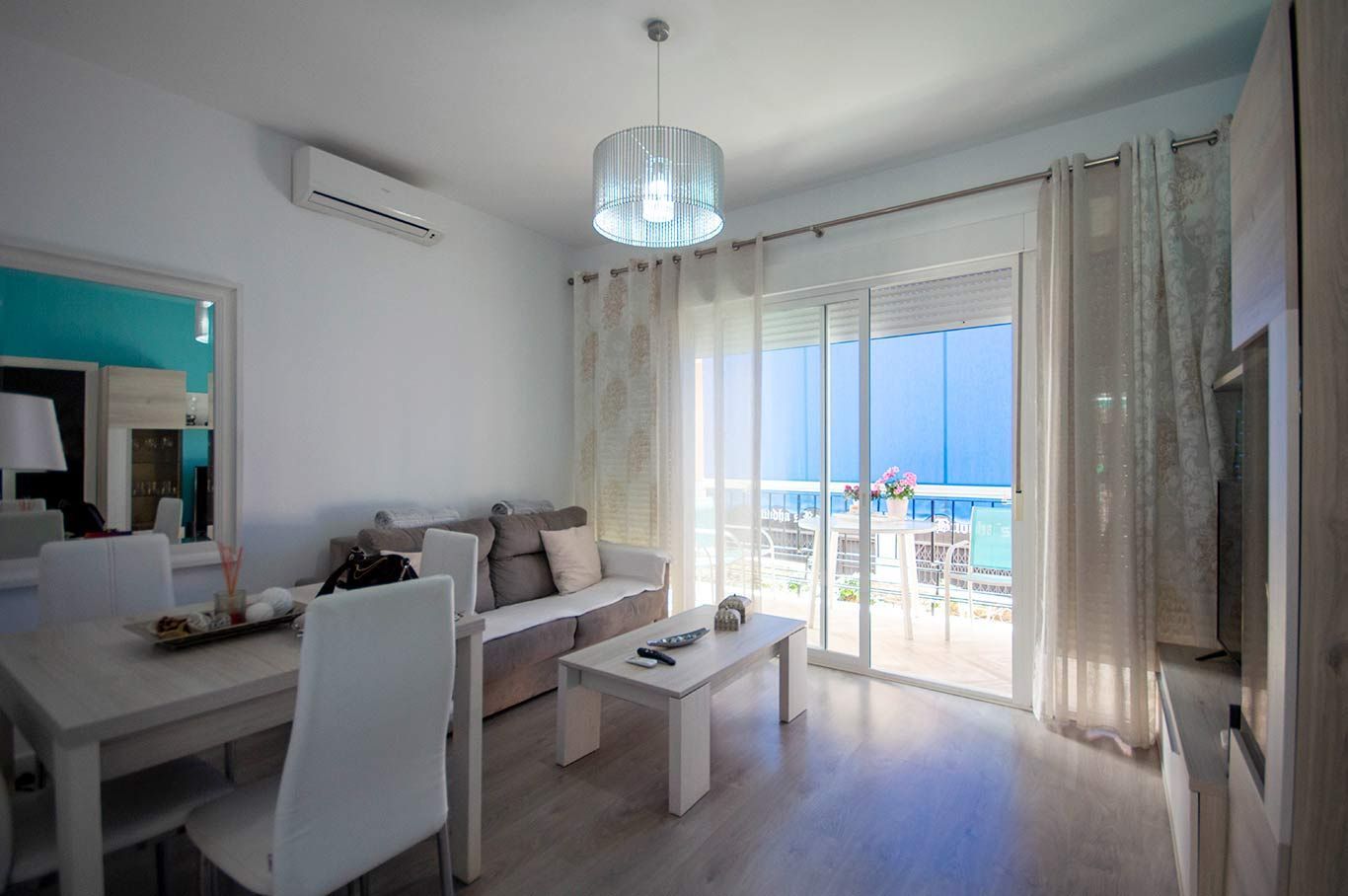 The terrace is furnished with furniture and awnings for added comfort. The living room is equipped with a flat-screen TV, wifi, and the property has air conditioning. The location is very convenient, as it is close to all services and means of transport.