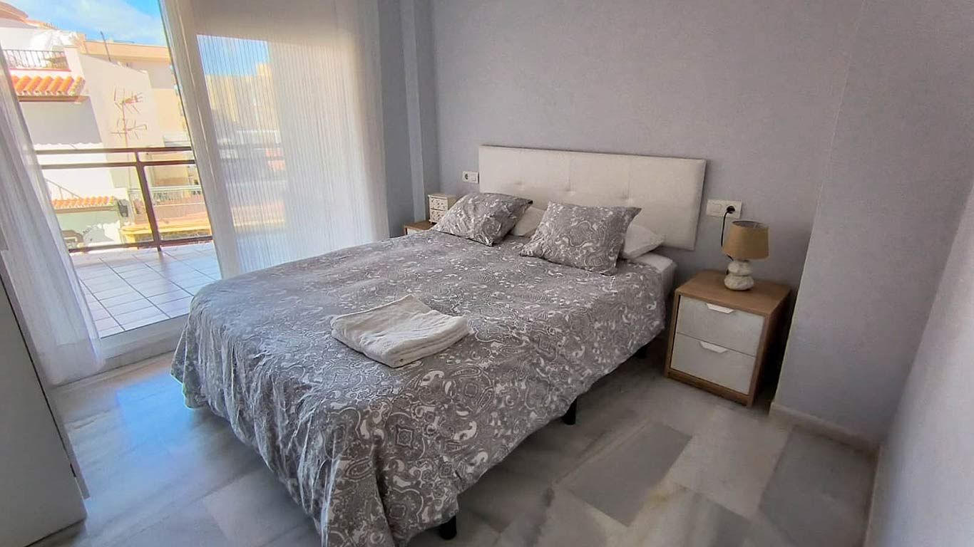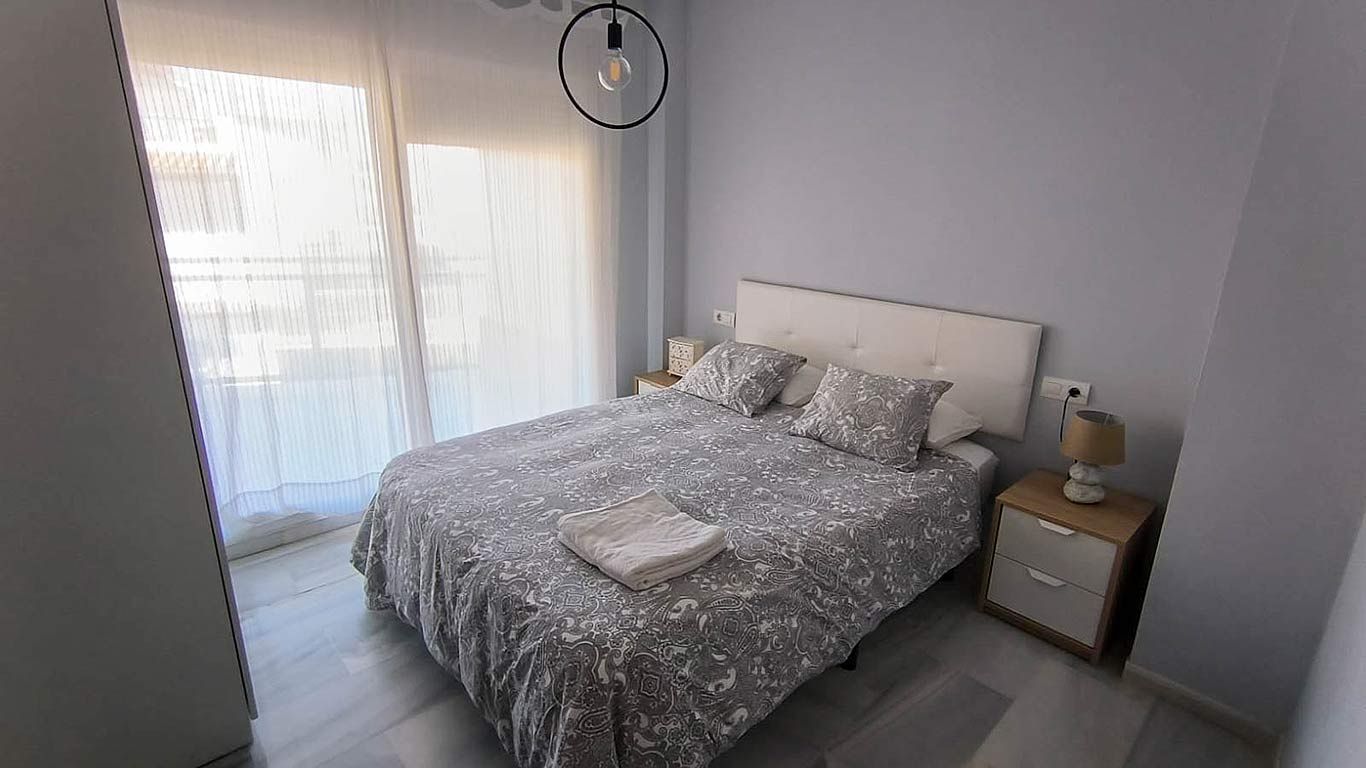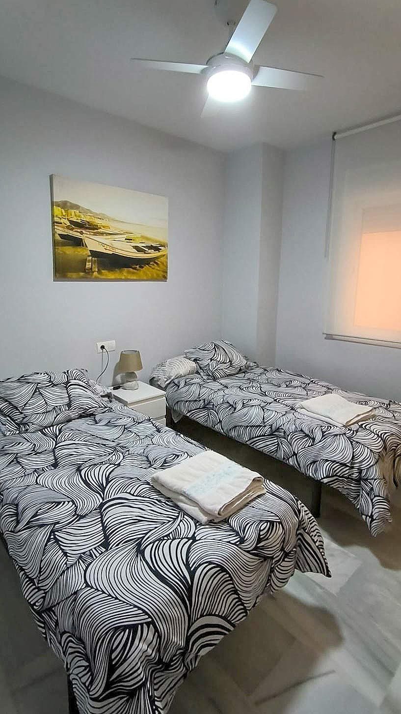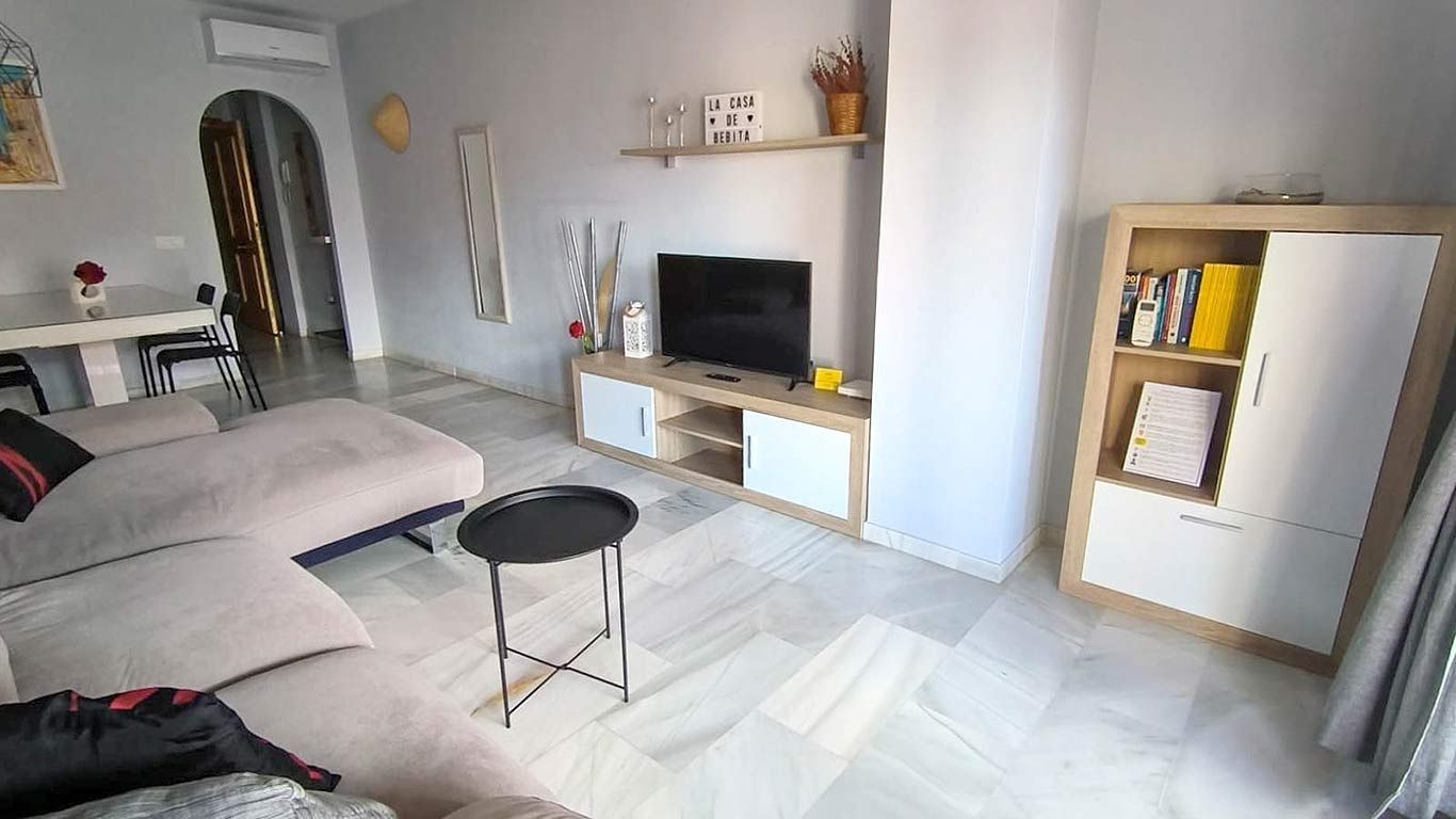 This modern apartment is located in a quiet central neighborhood of Fuengirola, close to beaches, Bioparc, water park, shopping and leisure areas. With 84 m² on the first floor, it offers two bedrooms, one with a double bed and another with two single beds, as well as a sofa bed for groups of five people.