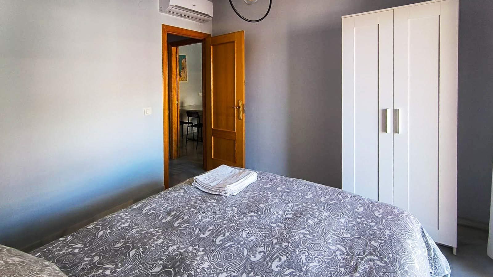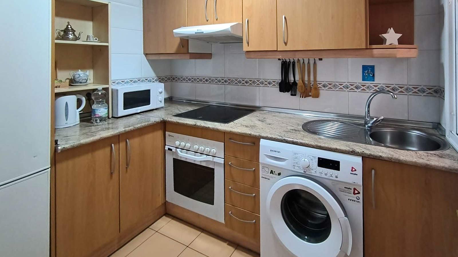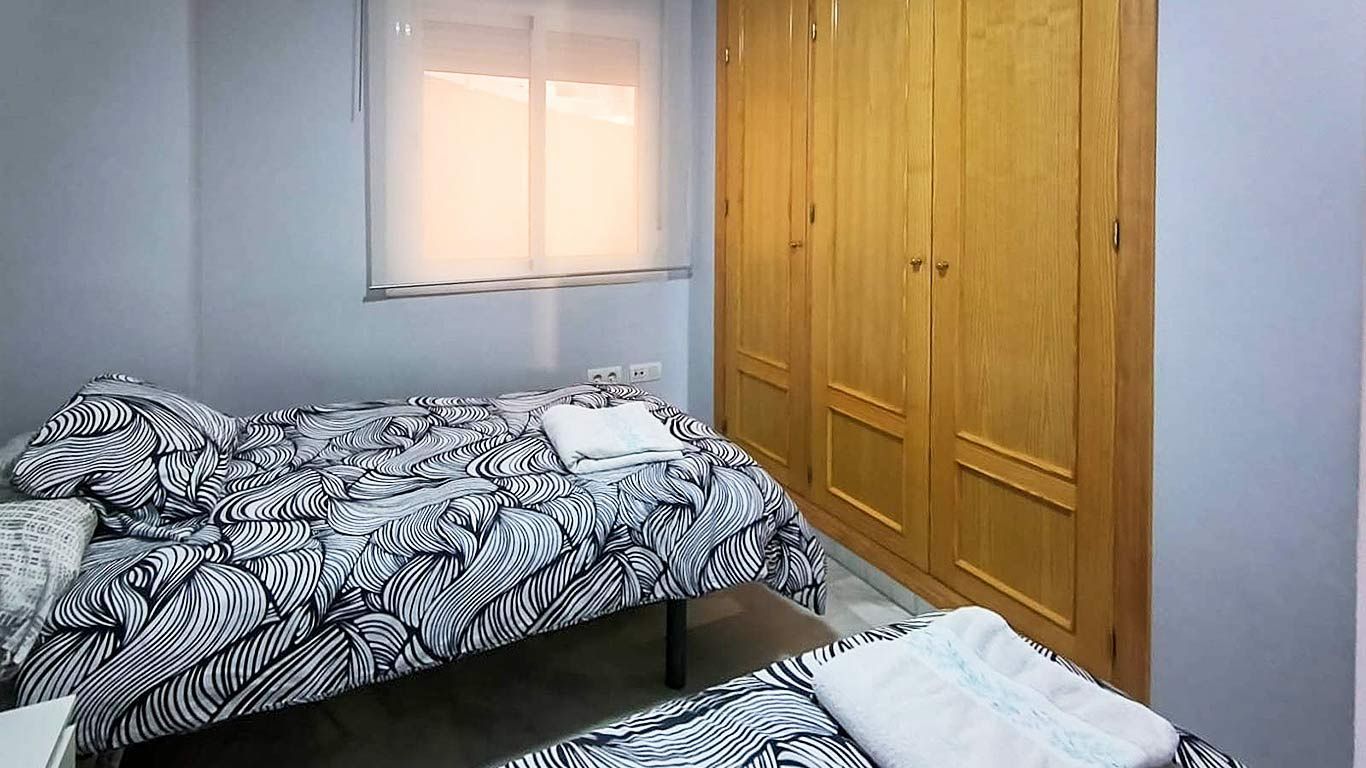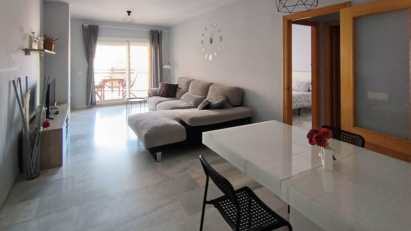 This modern apartment is located in a quiet central neighborhood of Fuengirola, close to beaches, Bioparc, water park, shopping and leisure areas. With 84 m² on the first floor, it offers two bedrooms, one with a double bed and another with two single beds, as well as a sofa bed for groups of five people.