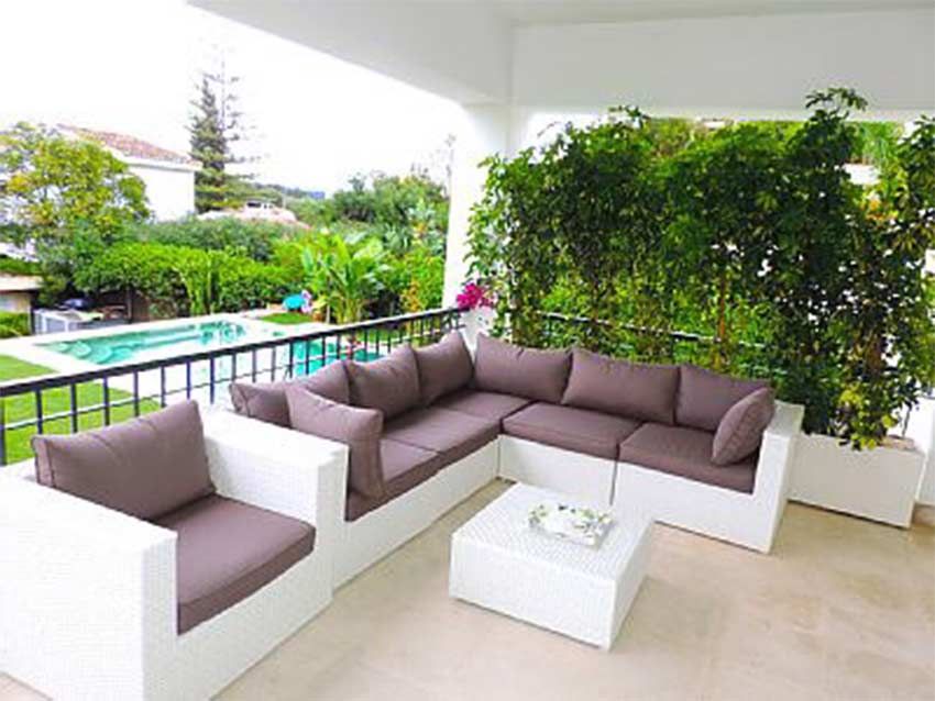 modern and luxurious villa for rent. It is located in Nueva Andalucía, 1 minute by car and 10 minutes on foot from Puerto Banús. The villa consists of 3 floors, has 6 bedrooms and 5 bathrooms, with high-quality marble floors throughout. It has separate A/C in all rooms, underfloor heating in all rooms and bathrooms, double-glazed windows, electric shutters on all windows, and a three-tier security system: inside the house on each floor, around the house, and the garden. In the garden, there is a separate electric irrigation system, palm trees, banana trees, and fruit trees. It also has parking space for 2 cars, a private, sunny large terrace outside each room, a sauna, and a large Russian billiard table in the basement. There is also a large private pool, with pre-installation for heating. If the client wanted to have a heated pool, it would take three days to install it. The house is newly built and has been in use since 2015.
