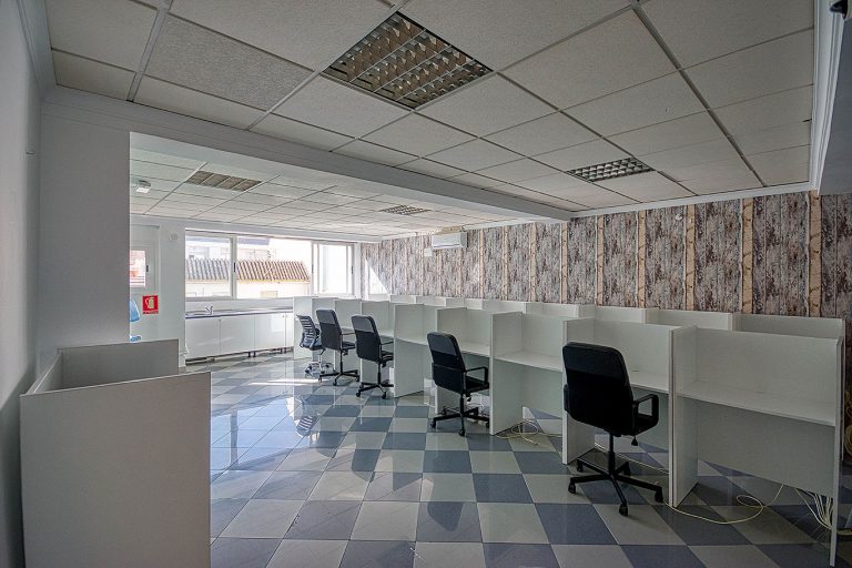 1.200 € /monthOffice for rent on the first floor, very central, on Calle San Rafael in Fuengirola. The office is open-plan and has approximately 120m², with a separate office. It has central air conditioning a