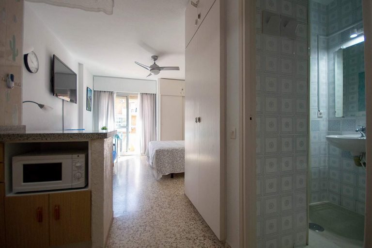 550 € /monthThis cozy 30m2 studio is located in the Arroyo de la Miel area and features a small east-facing terrace that offers sea views. The apartment is equipped with a comfortable double bed, a flat-screen TV
