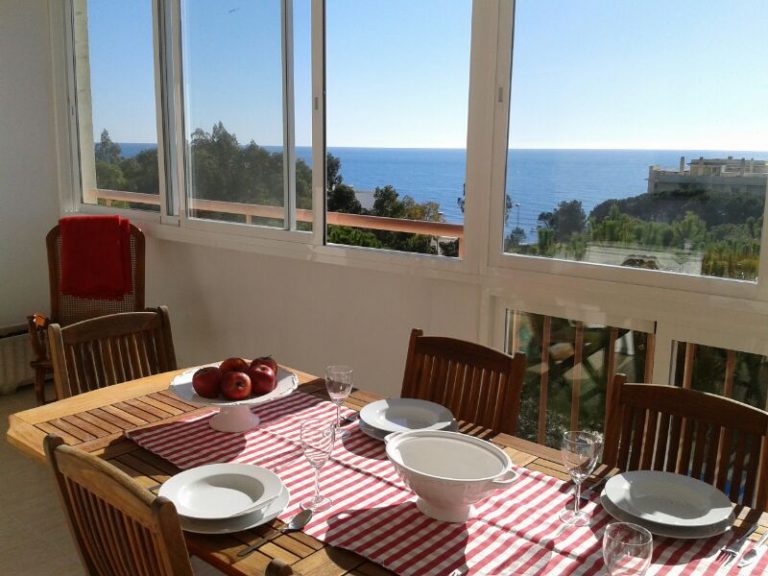1.300 € /monthAttic 4/6 people. Living room with air conditioning and sofa bed. Nice terrace of 22 meters glazed and with sea views (Luna beach). Private use terrace of 70 m2 with barbecue and magnificent views of