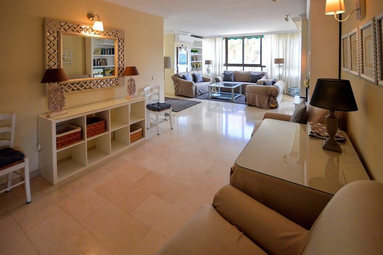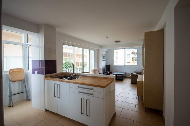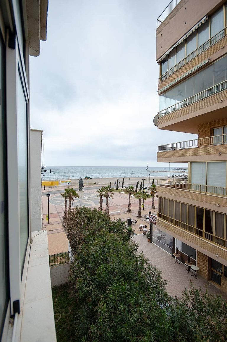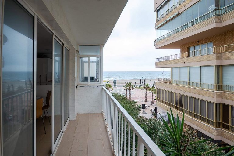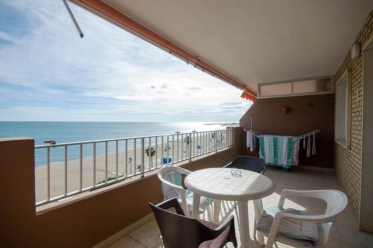3.000 € /monthOn the first line of the beach in Los Boliches, 3-bedroom, 2-bathroom apartment with terrace, southwest facing for afternoon sun. Recently renovated open-plan kitchen, equipped with appliances, dishes