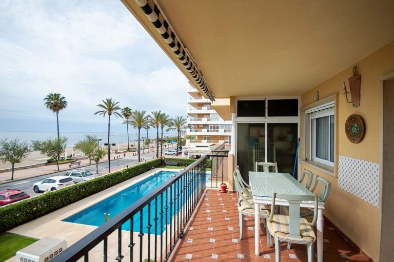 1.200 € /monthOn the first line of the beach in the area of Los Boliches and Torreblanca Sunny apartment with 2 bedrooms and 2 bathrooms With a large terrace facing southeast and with sea views Well maintained and