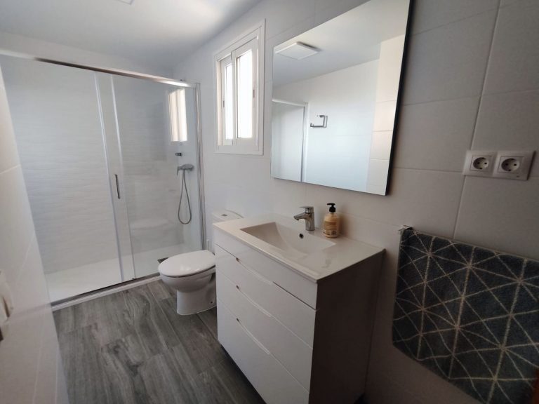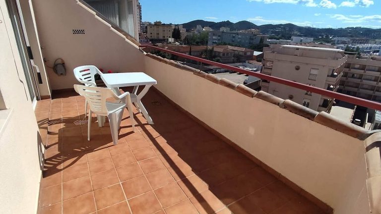 750 € /month2-bedroom penthouse, 1 bathroom (now renovated and with shower tray), open kitchen to the living room and with a window to the large terrace that faces Medina street. It has 2 terraces, one with after