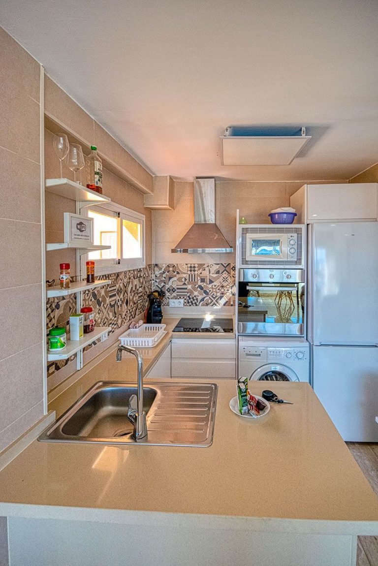 1.300 € /monthWide and sunny beachfront apartment in Torreblanca It has 3 bedrooms, 2 bathrooms, a separate kitchen, and a laundry room. The kitchen is equipped with all kinds of appliances and a gas stove for cook