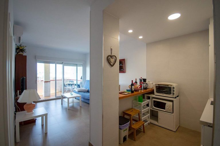 1.060 € /monthSunny beachfront apartment in Los Boliches Located on the seventh floor, this bright apartment offers fabulous sea views, gardens, and the pool. It features a fully renovated independent kitchen equip