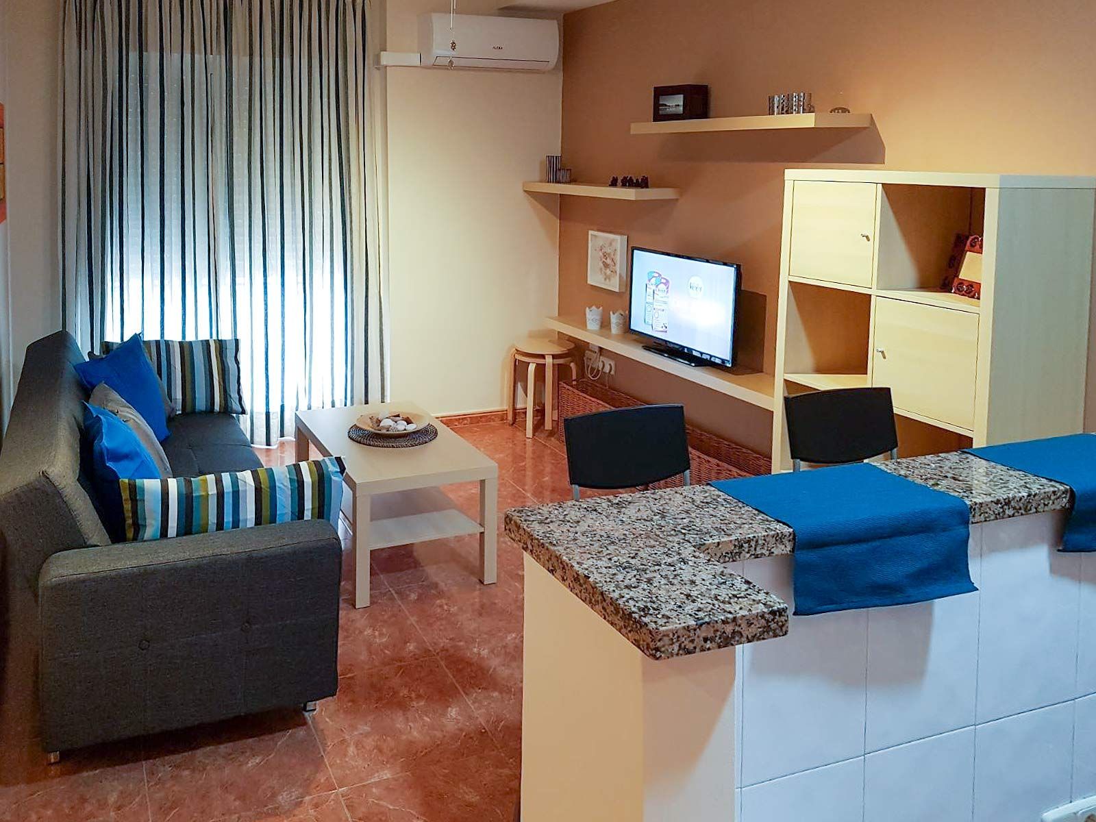 Cerca de la estacion de tren Tiendas, negocios cerca Playa a 3 minutos andando Sofa cama en el salon 3 – 4 personas maximo. Tiene horno en la cocina
