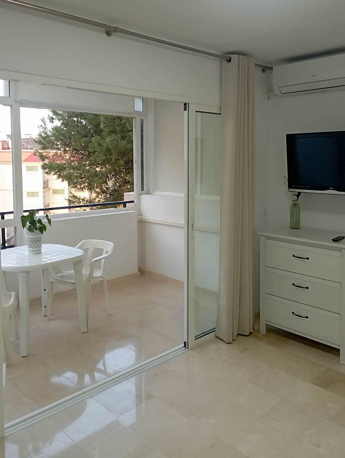 Piso en bonita urbanización con piscina y amplias zonas ajardinadas, en residencial tranquilo. 1 dormitorio, baño completo con bañera, cocina totalmente equipada, gran armario empotrado y salón con sofá cama y amplio ventanal. Playa a unos 50 metros. 4ª Planta.
