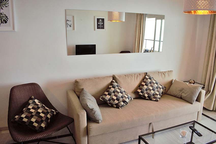 Terassi merinäköalalla, 1 makuuhuone parivuoteella omalla kylpyhuoneella, toinen makuuhuone, jossa on 2 sänkyä, vuodesohva olohuoneessa; 2 kylpyhuonetta käytävällä. INTERNET. Keittiö, pesuhuone, terassi… täysin kalustettu, mukaan lukien terassi. Ilmastointi koko asunnossa, pysäköinti yhdelle ajoneuvolle sisältyy. Hinta € kuukaudessa, internet ja pysäköinti sisältyvät. Vesi erikseen…
