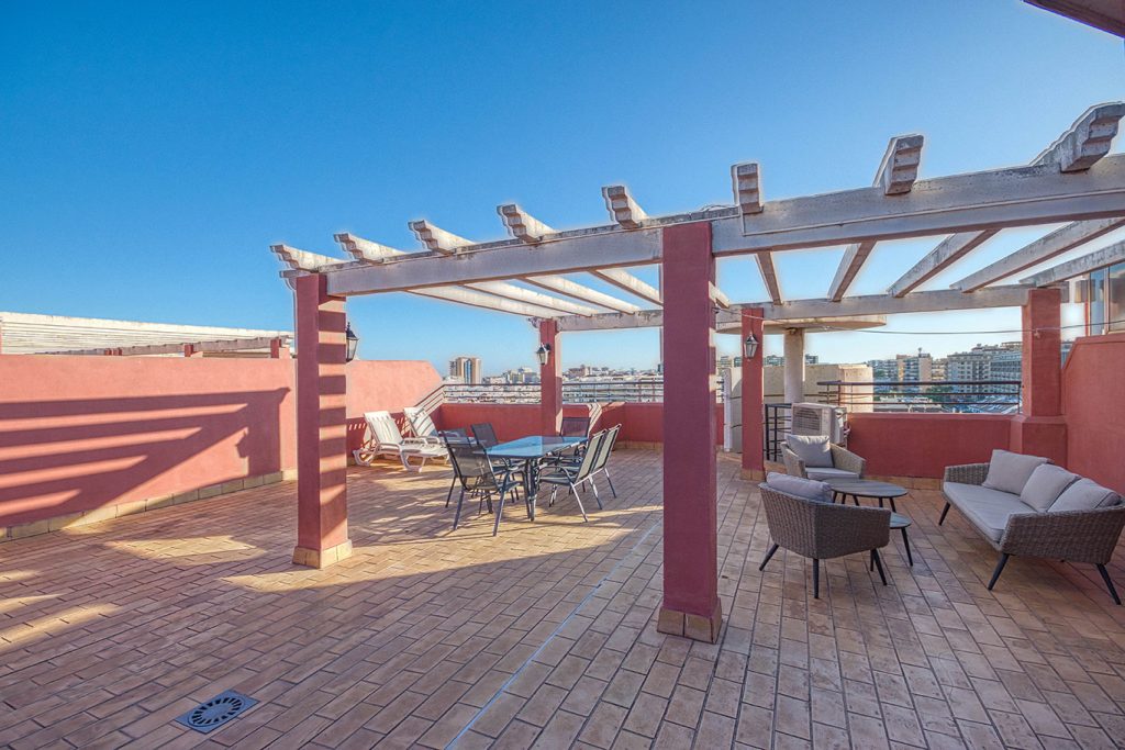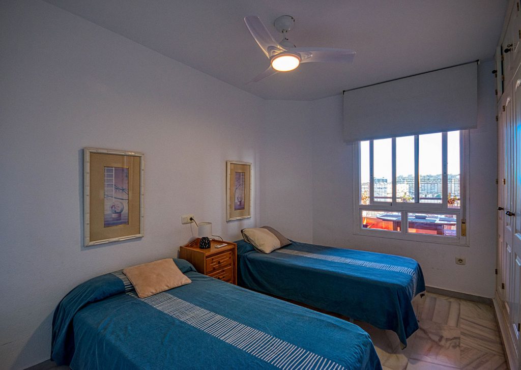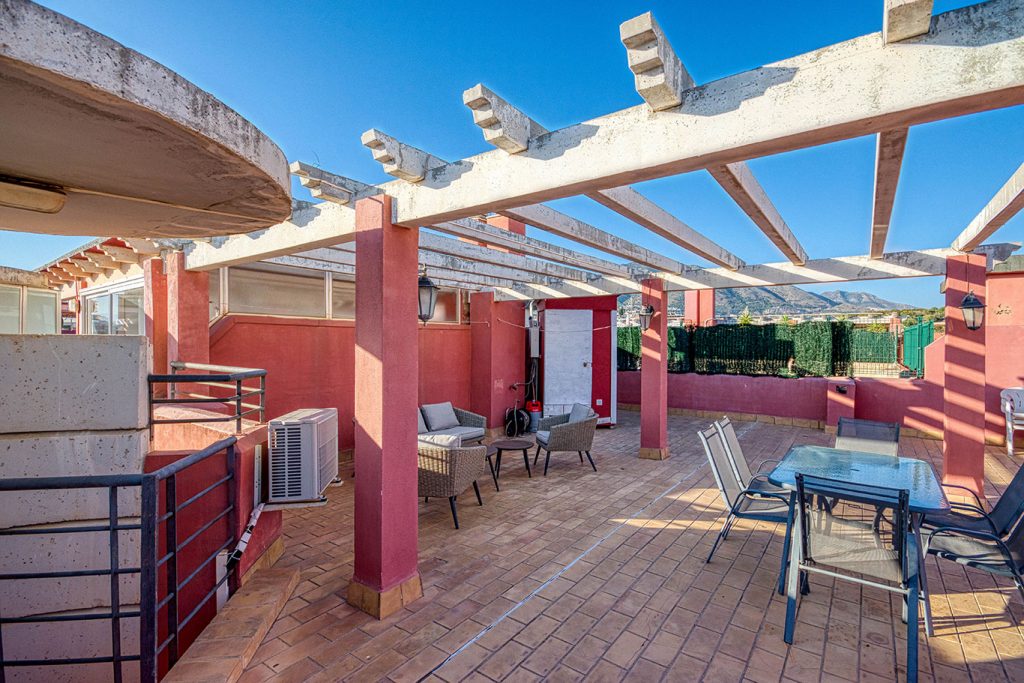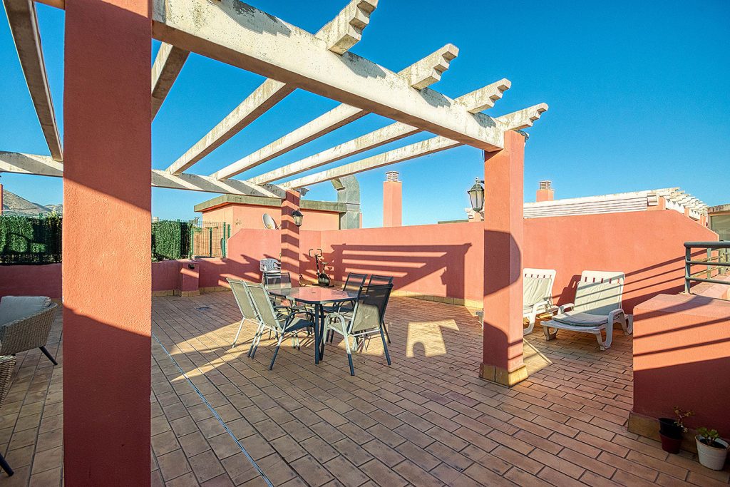Kaunis kattokerros lähellä rantaa, täysin kalustettu merinäköalalla ja vuoristolla, jossa on 2 terassia ja aurinkoterassi, sijaitsee suljetussa ympäristössä, jossa on vahtimestari, padelkenttä, turvakamerat, uima-allas, puutarhat, pelastaja, yksityinen autotalli, 4 yhden hengen sänkyä ja 1 parivuode kylpyhuoneella, täysin varusteltu keittiö astianpesukoneella, valmiina perhelomaasi. Ranta noin 100 metrin päässä. 8. kerros