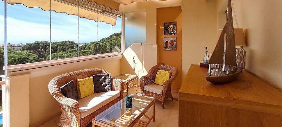 1 makuuhuone ja 1 kylpyhuone, olohuone, erillinen keittiö ja tilava lasitettu terassi liukuovilla, jotka antavat täydellisen pääsyn terassille, jolta on upeat näkymät merelle ja mäntyjen yli.