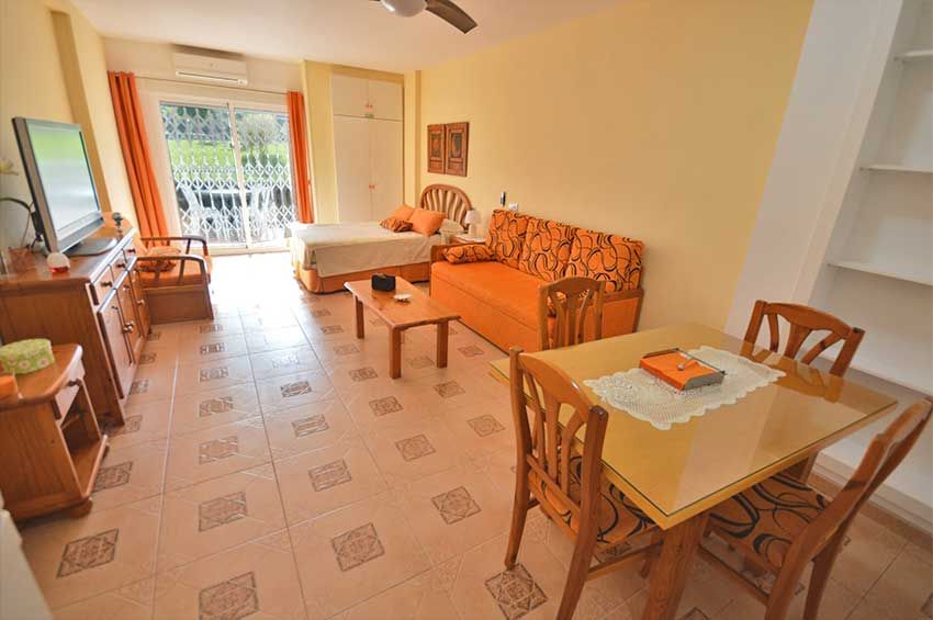 Amplio y muy luminoso debido a su orientacion al sol de tarde Con acceso directo desde la terraza a los jardines comunitarios y la piscina. Baño completamente reformado con plato ducha Tiendas , restaurantes y negocios cerca Parada de autobus cerca y la estacion de tren a 15 minutos andando Playa a unos 800 metros