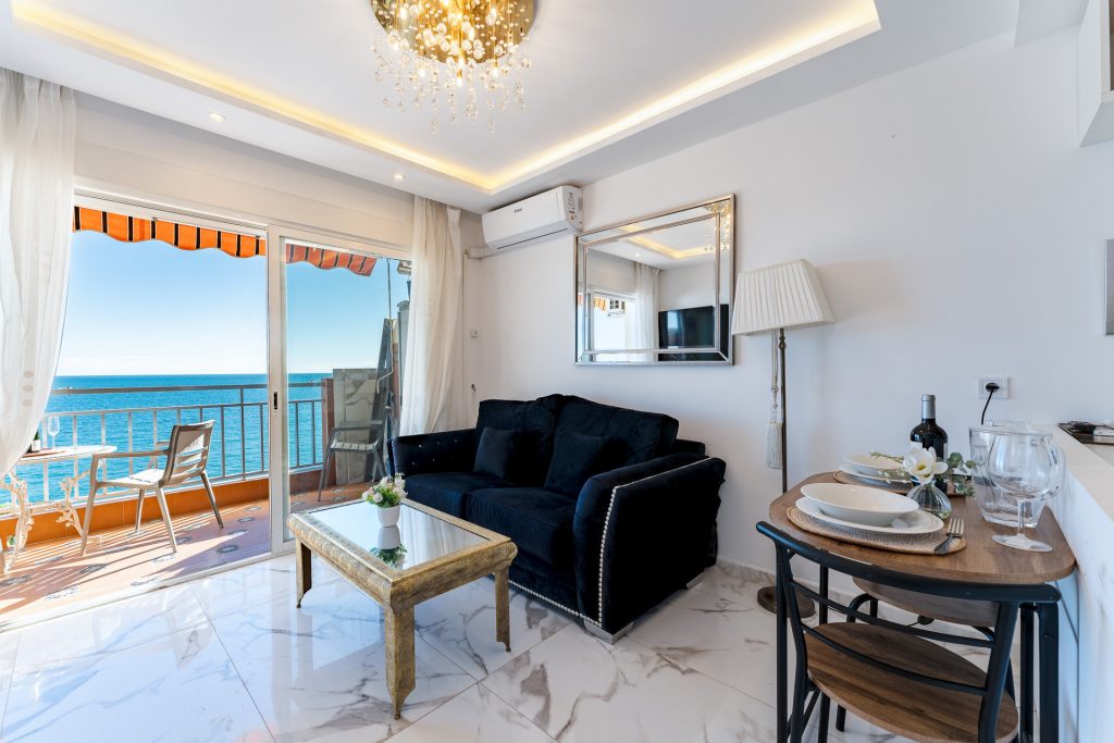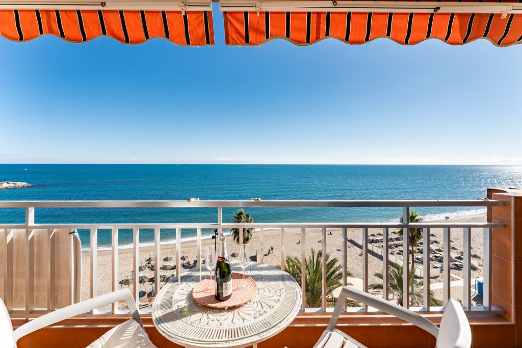 Acogedor y luminoso apartamento situado en primera línea del Paseo Marítimo de Fuengirola, con terraza privada y vistas frontales al mar. Un espacio ideal para relajarse, desayunar al sol o disfrutar de los atardeceres frente a la playa.