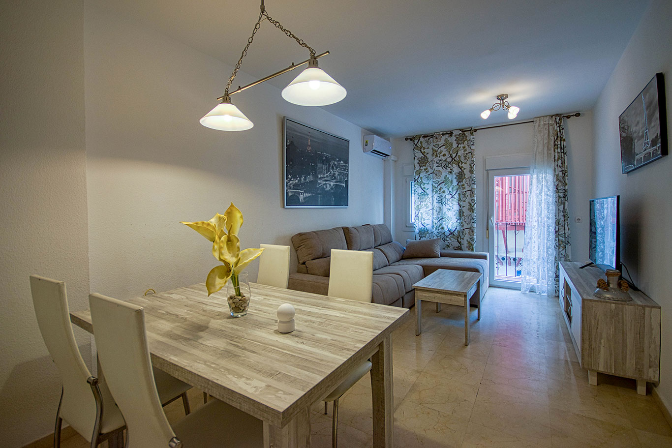 - Salón-comedor muy luminoso, con sofá chaise longue, TV de pantalla plana y aire acondicionado