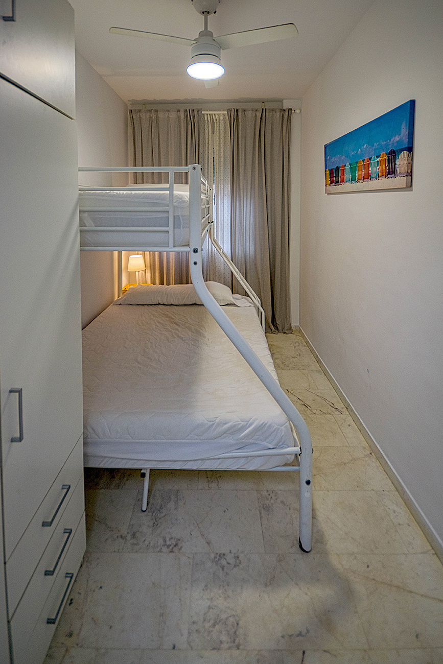 El segundo dormitorio está equipado con camas tipo litera, ideal para niños o acompañantes.