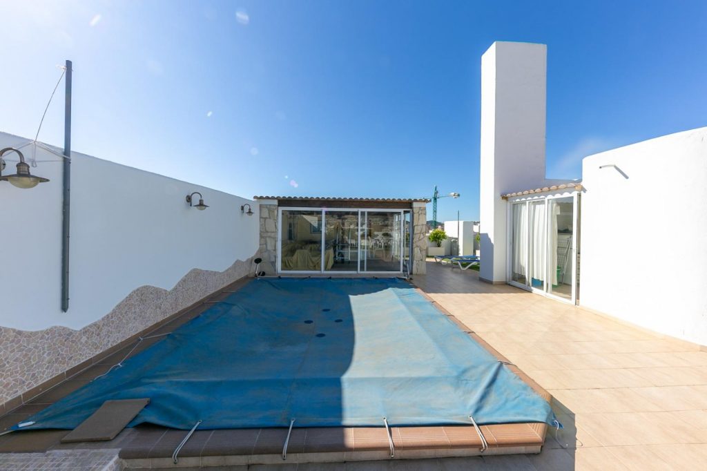 En la planta superior, el ático dispone de una espectacular terraza privada con piscina, zona solárium, áreas ajardinadas y espacio para comedor exterior, ideal para disfrutar del clima mediterráneo con total privacidad.