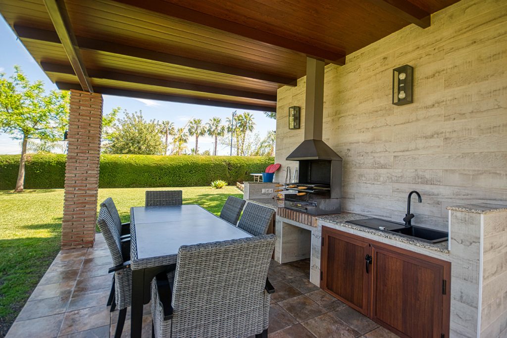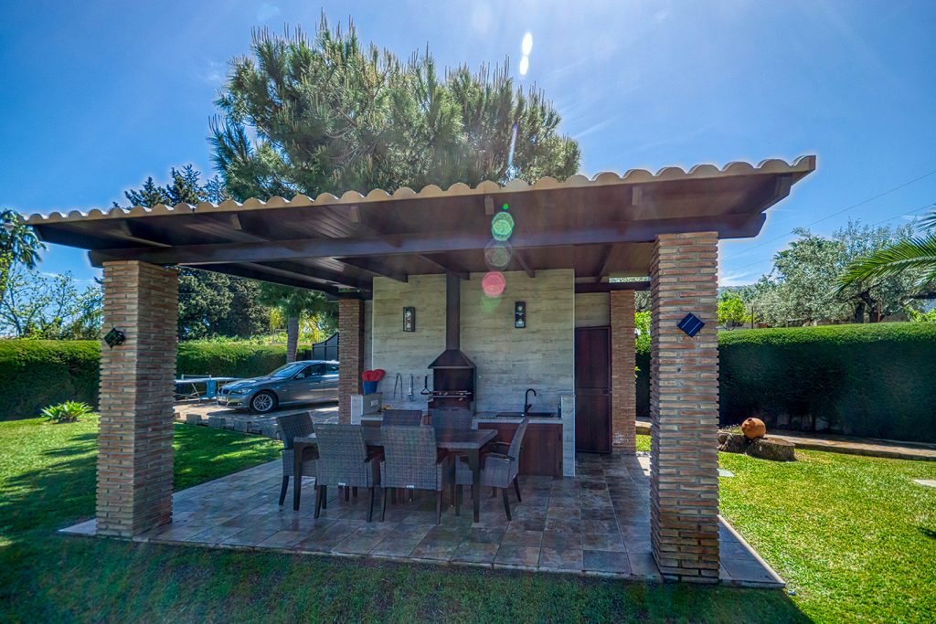 En el exterior encontramos una gran parcela ajardinada muy soleada, cuidadosamente mantenida, con una magnífica piscina privada, ducha exterior y agradables vistas abiertas al monte. También destaca una amplia zona de barbacoa cubierta, perfecta para disfrutar todo el año, junto a la cual hay un pequeño aseo adicional.