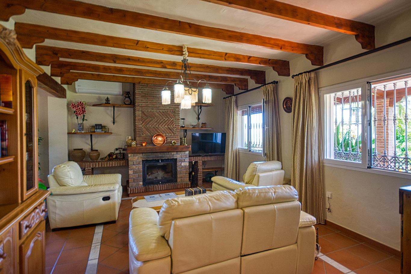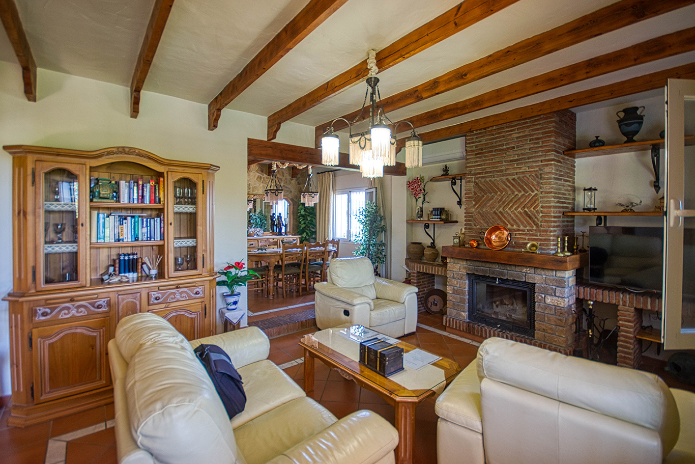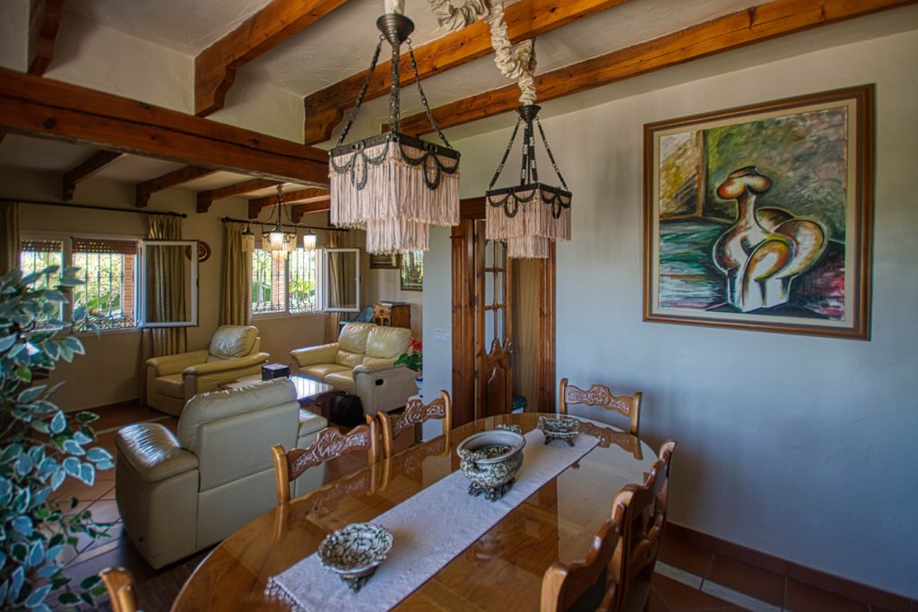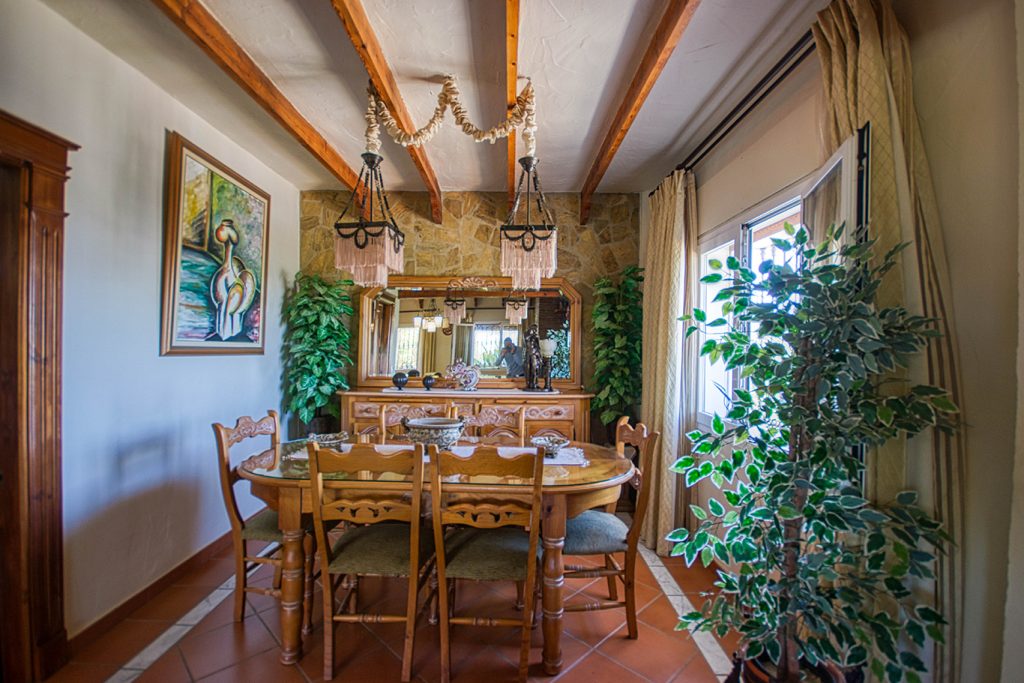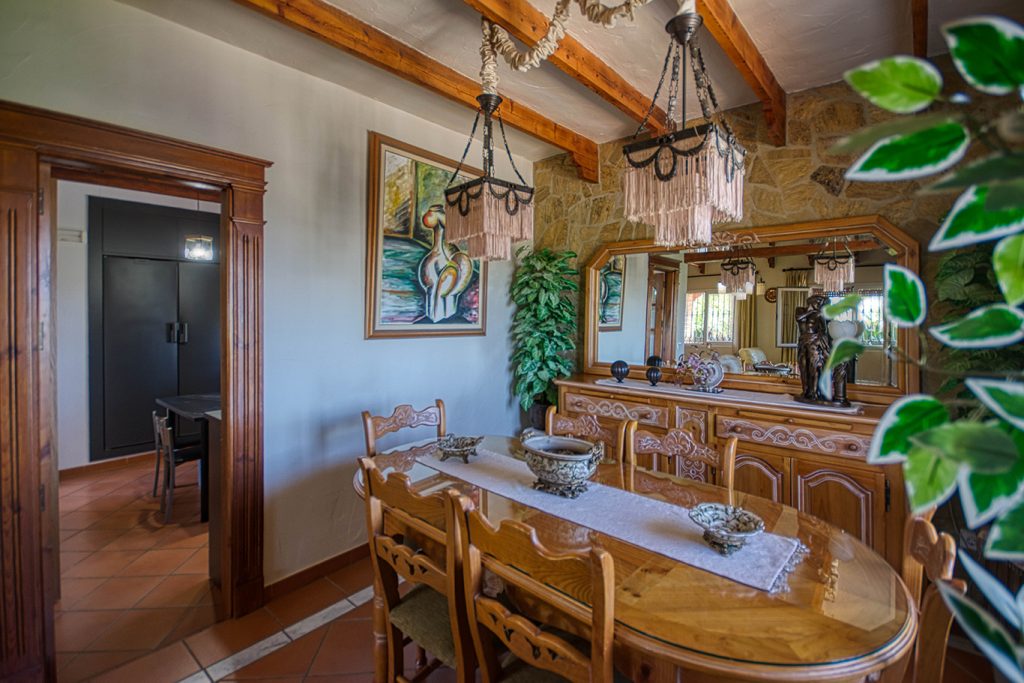 La casa dispone de 3 dormitorios y 2 baños, uno de ellos equipado con bañera jacuzzi y el otro con práctico plato de ducha. El salón principal es amplio y acogedor, con chimenea, conectado a un elegante comedor independiente que aporta comodidad tanto en el día a día como para recibir invitados.