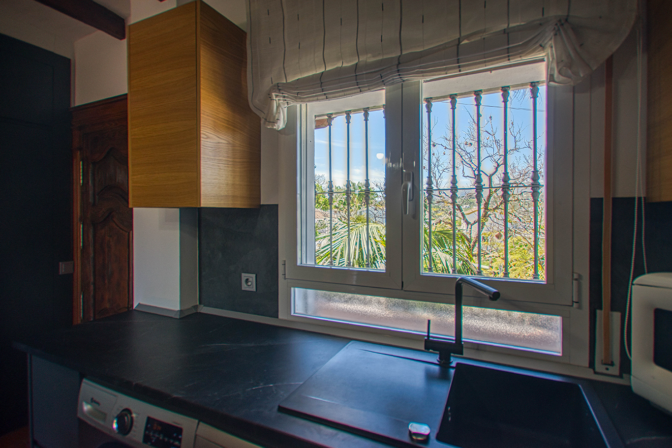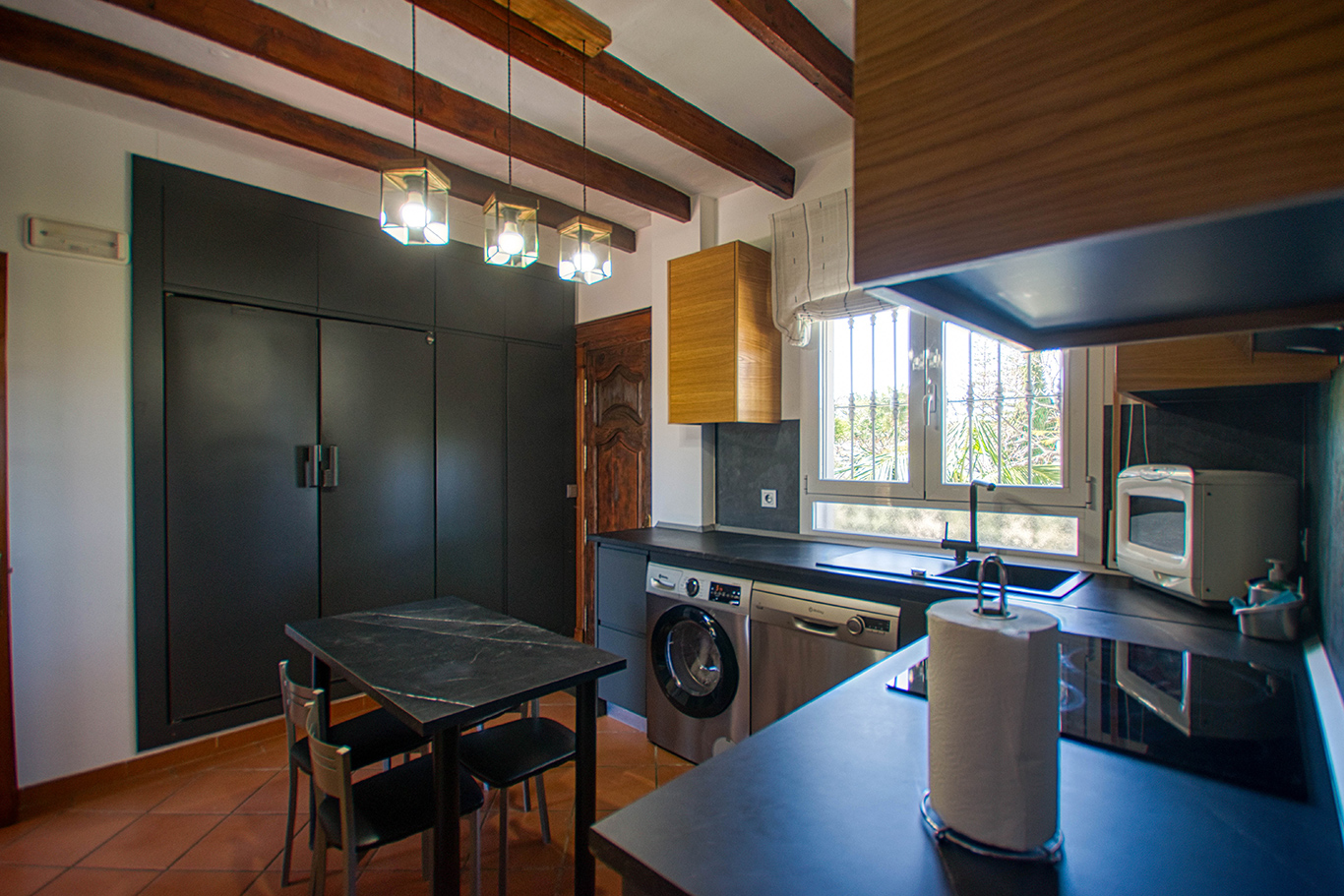 La cocina independiente, recientemente reformada, cuenta con electrodomésticos de calidad y un diseño moderno y funcional. Además, la vivienda dispone de fibra óptica instalada, ideal para teletrabajo, así como antena satélite para canales internacionales.