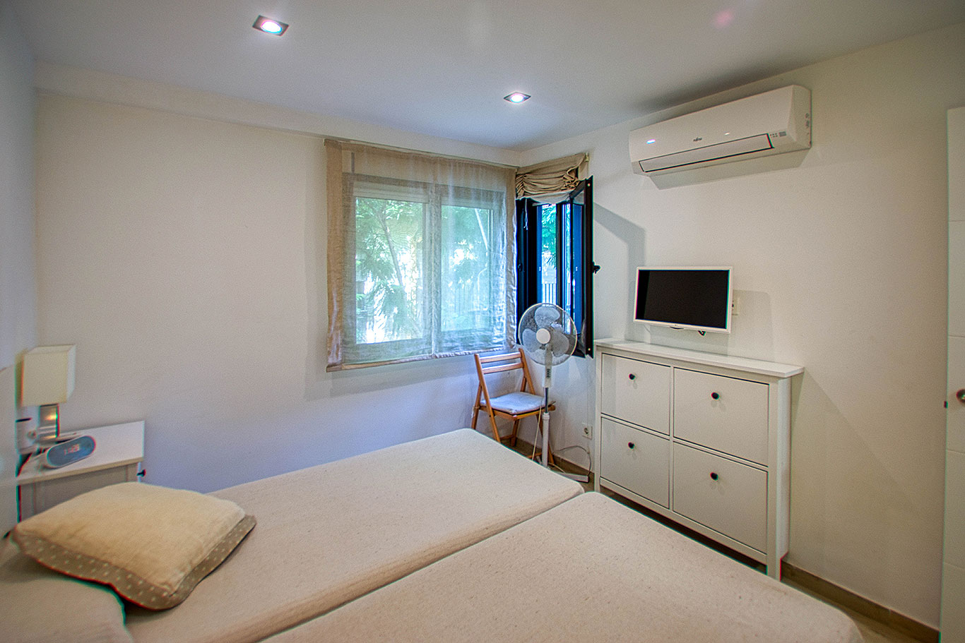 Decoración en tonos claros que potencia la luminosidad. Aire acondicionado en salón y dormitorio principal, wifi activo. Estancia mínima de 2 meses. No se admiten mascotas. Ubicación privilegiada junto a paseo marítimo, comercios, restaurantes y transporte público.